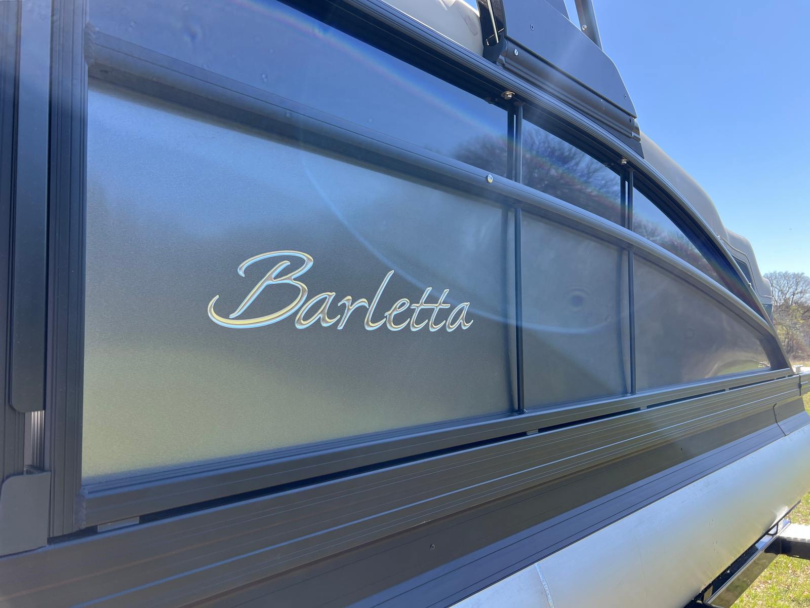 The Barletta Cabrio C22U is packed with special features that elevate its appeal and functionality. The Railskin Color in Black Diamond, complemented by the Gray Moonstone accent, gives the boat a sophisticated and contemporary look. The Blackout Package Cabrio adds a touch of exclusivity, ensuring your pontoon stands out wherever you go. Inside, the Marquesan Gray furniture with Onyx accents creates a comfortable and stylish environment, while the Amore Gray flooring is both attractive and easy to maintain.One of the standout features is the Triple Toon Package with midship storage, providing enhanced stability and extra space for gear, water toys, or personal belongings. The Sport Bimini canvas, installed in place of the standard bimini, offers superior sun protection and adds a sporty flair to the boat’s profile. Every detail, from the rigged engine with stainless steel prop to the thoughtfully designed interior, reflects Barletta’s dedication to quality and user satisfaction.