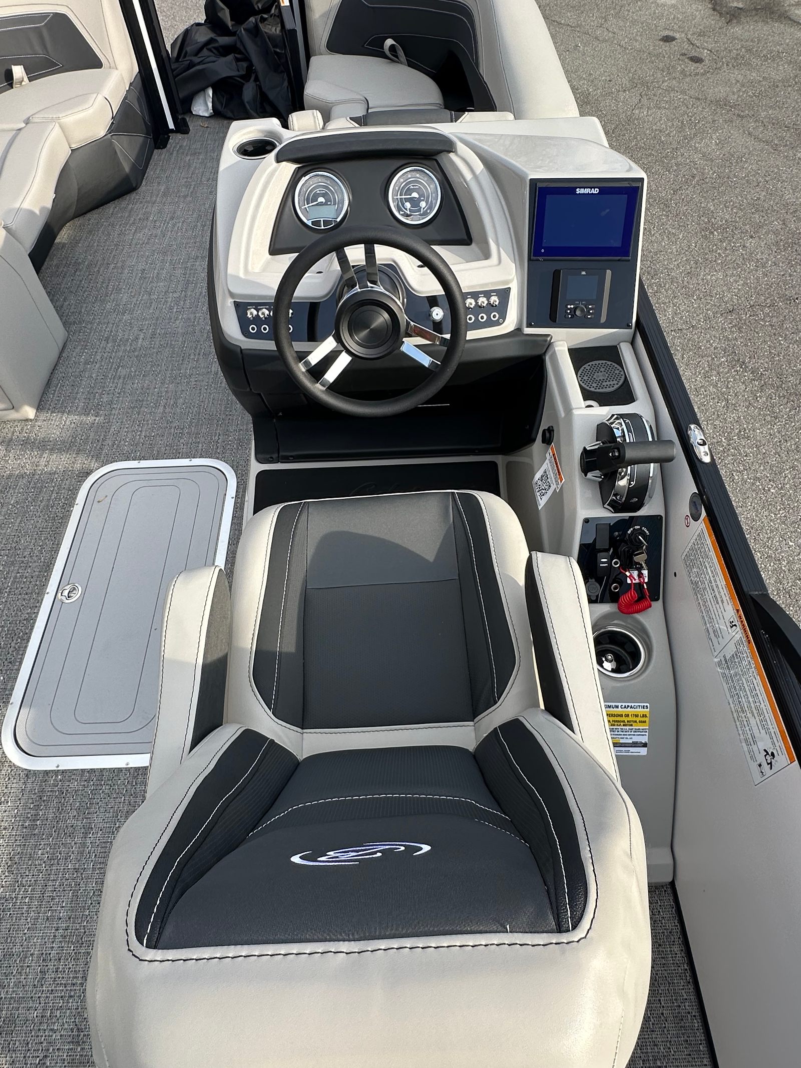 The Barletta Cabrio C22UC is designed with practicality in mind, making ownership as enjoyable as your time on the water. The midship storage compartment is perfect for stowing life jackets, fishing gear, or picnic supplies, keeping the deck clutter-free and organized. The power assist steering and stainless steel prop make docking and maneuvering effortless, even for less experienced boaters.Fuel efficiency is another key advantage, thanks to the advanced Mercury FourStroke engine, allowing you to spend more time cruising and less time refueling. The onboard battery charger with dual batteries provides peace of mind, ensuring your electronics and accessories are always ready for use.