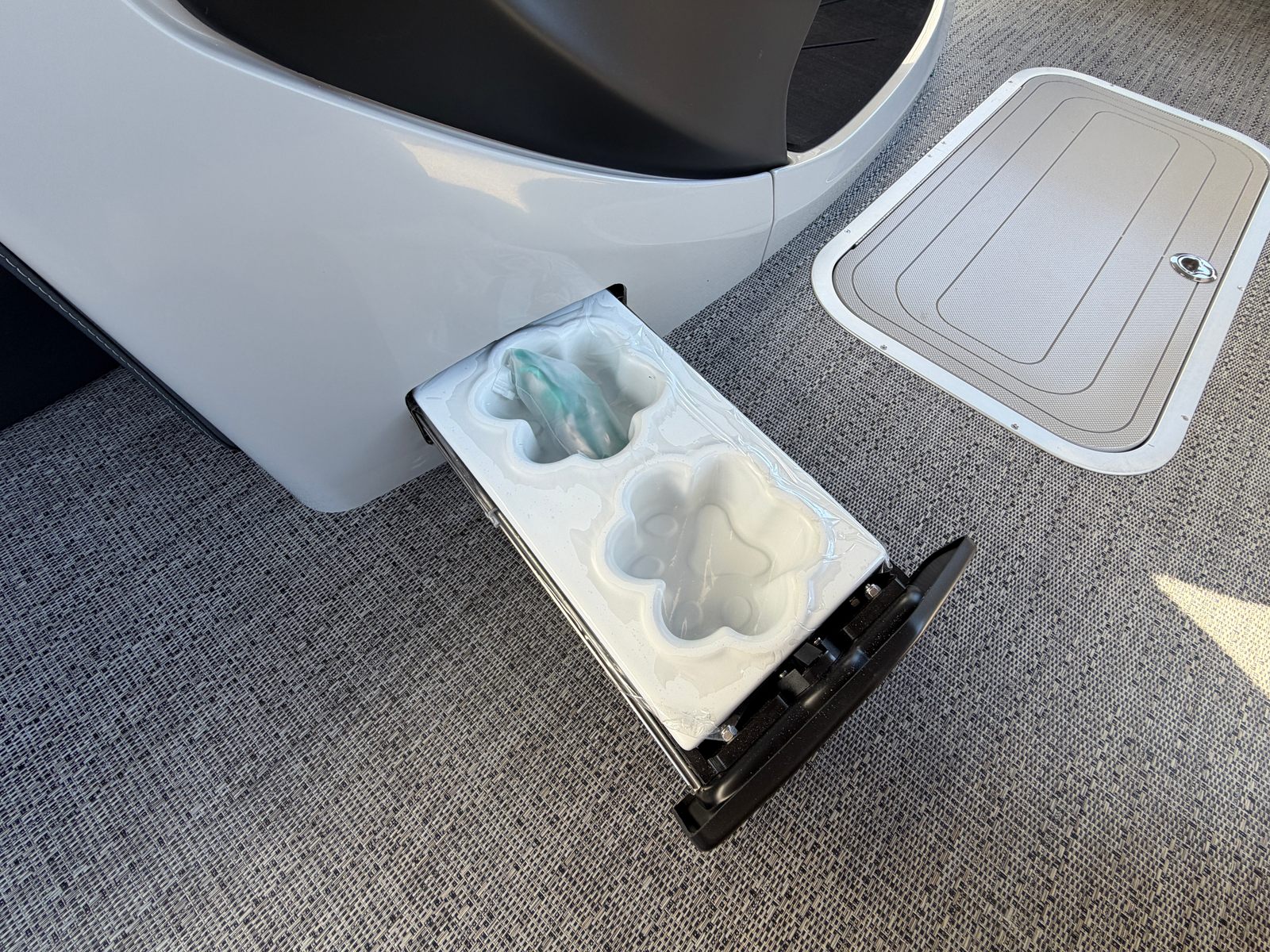 The Barletta Cabrio C22UC is as practical as it is stylish. The midship storage included in the triple toon package offers ample space for life jackets, water toys, and other essentials, keeping your deck tidy and your gear within easy reach. The power assist steering makes docking and maneuvering a breeze, reducing stress and allowing you to focus on having fun.Fuel efficiency is enhanced by the advanced Mercury FourStroke engine, so you can spend more time on the water and less time at the pump. The durable flooring and high-quality materials are designed to withstand the rigors of regular use, ensuring your pontoon boat remains in top condition for years to come. The double bimini provides flexible shade options, making it easy to adapt to changing weather and keep everyone comfortable.
