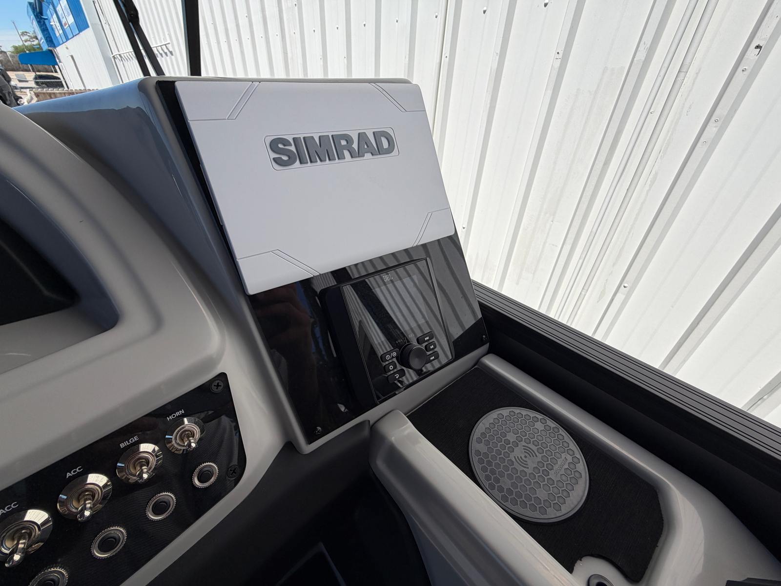 The Barletta Cabrio C22UC is loaded with special features that set it apart from other pontoon boats for sale. The Gray Moonstone Railskin color and Cabrio Blackout Package create a bold and stylish exterior, while the Marquesan Gray with Onyx furniture provides plush seating and a luxurious feel. The Amore Gray flooring is both elegant and practical, offering a comfortable surface that is easy to clean and maintain.The Cabrio Triple Toon Package with midship storage adds valuable space for your gear, making it easy to keep the deck organized and clutter-free. The Mercury (M) 200L FourStroke engine is paired with a pre-rig mechanical system and a stainless steel prop for reliable and efficient operation. Power assist steering ensures smooth and responsive control, enhancing your overall boating experience. The double bimini provides ample shade, allowing you and your guests to relax in comfort, even on the sunniest days.