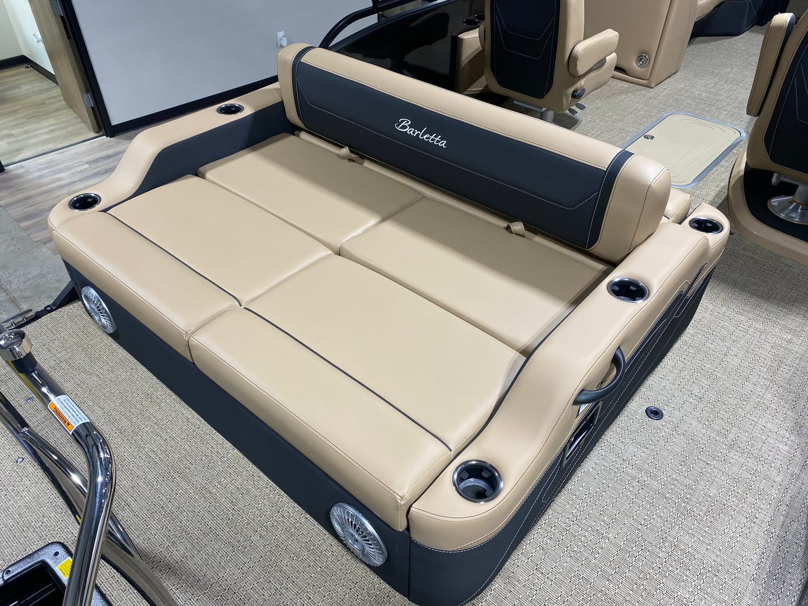 The 2026 Barletta Cabrio C22UC Pontoon stands out as a premier option in the world of recreational boating. Measuring an impressive 23.17 feet in length, this new pontoon offers ample space for family gatherings, social outings, or peaceful escapes on the lake. The Cabrio C22UC’s sleek profile is enhanced by the Black Diamond Railskin color and the Blackout Package Cabrio, giving it a sophisticated and modern look that turns heads wherever you go. The Carmella Tan with Onyx furniture and Amore Tan flooring create a warm, inviting atmosphere, making every moment on board feel like a luxury retreat.