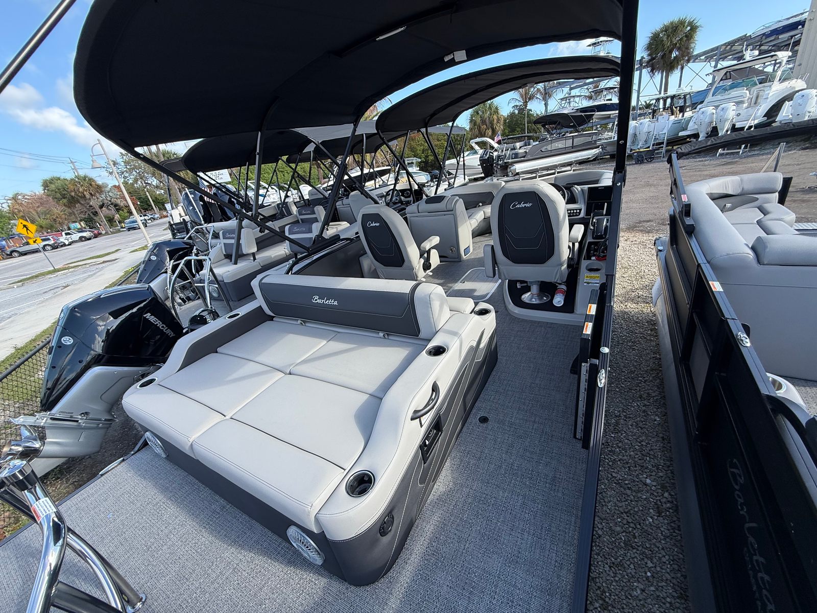The 2026 Barletta Cabrio C22UC is loaded with features that set it apart from other pontoon boats for sale. The striking Railskin Color in Blue Sapphire, accented by Gray Moonstone, gives this pontoon a sophisticated and eye-catching appearance. The Blackout Package Cabrio adds a bold, modern touch, while the Marquesan Gray with Onyx furniture offers both comfort and elegance. The Amore Gray flooring is not only stylish but also practical, providing a durable and easy-to-clean surface for all your onboard activities.This model is part of the Coastal Edition Cabrio, designed to withstand the unique challenges of coastal environments, ensuring longevity and resilience. The Triple Toon Package with midship storage enhances both performance and convenience, offering extra space for gear and water toys. The Mercury Digital DTS Pre-Rig and power assist steering further elevate the driving experience, making this Barletta boat for sale a true standout in its class.