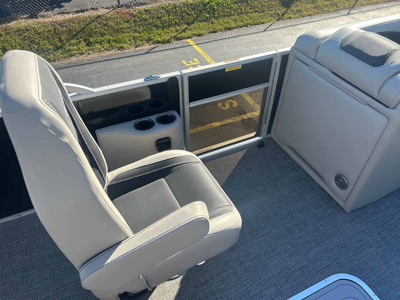 The Barletta Cabrio C22UC is loaded with features that elevate your boating experience. The Triple Toon Package with midship storage maximizes stability and buoyancy, allowing for a smoother ride even in choppier conditions. The midship storage compartment provides ample space for stowing gear, water toys, and essentials, keeping the deck clutter-free and organized.The interior of the Cabrio C22UC is a showcase of luxury and functionality. The Marquesan Gray with Onyx furniture offers plush seating and a contemporary look, while the Amore Gray flooring is both stylish and easy to maintain. The interior RGB lighting package creates a customizable ambiance, perfect for evening cruises or entertaining guests after sunset.At the helm, the Simrad 7" G07 XSR Chartplotter/Multifunction Display puts advanced navigation and system controls at your fingertips. This intuitive display allows you to monitor your route, track your speed, and access vital boat information with ease, ensuring a safe and enjoyable journey every time.The exterior is just as impressive, featuring a stainless steel flag pole with an American flag, adding a patriotic touch and a sense of pride to your boating adventures.