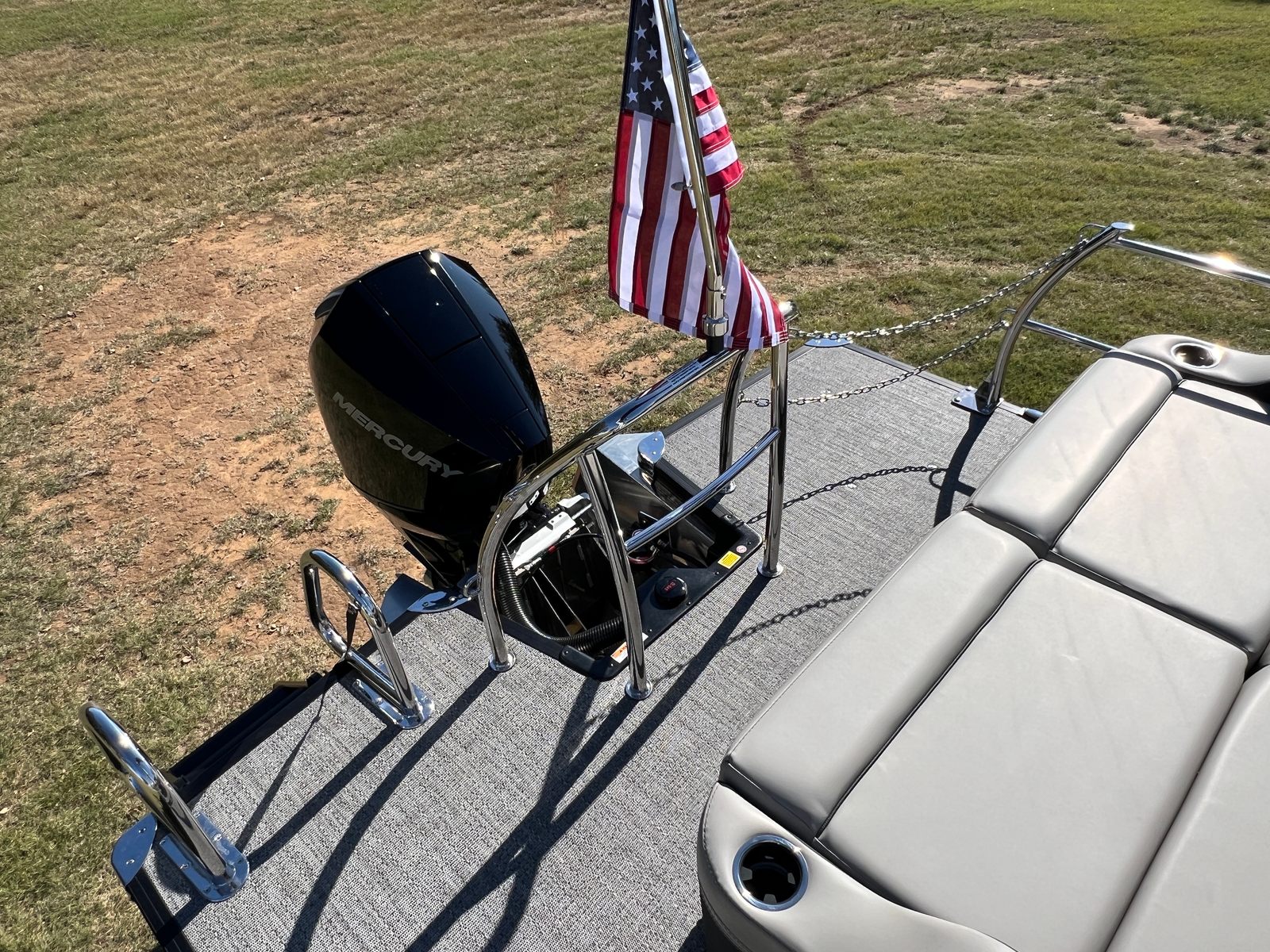 Powering the Barletta Cabrio C22UC is a robust Mercury 200L FourStroke engine, delivering an impressive 200 horsepower. This single-engine setup ensures smooth acceleration, responsive handling, and reliable performance for a variety of water activities. The Mercury mechanical pre-rig with power assist enhances maneuverability, making docking and navigating tight spaces effortless. The stainless steel prop maximizes efficiency and durability, while the triple toon package with midship storage boosts stability and ride quality. Whether you’re cruising at a leisurely pace or seeking a bit of excitement, this pontoon boat offers the power and agility to match your mood.