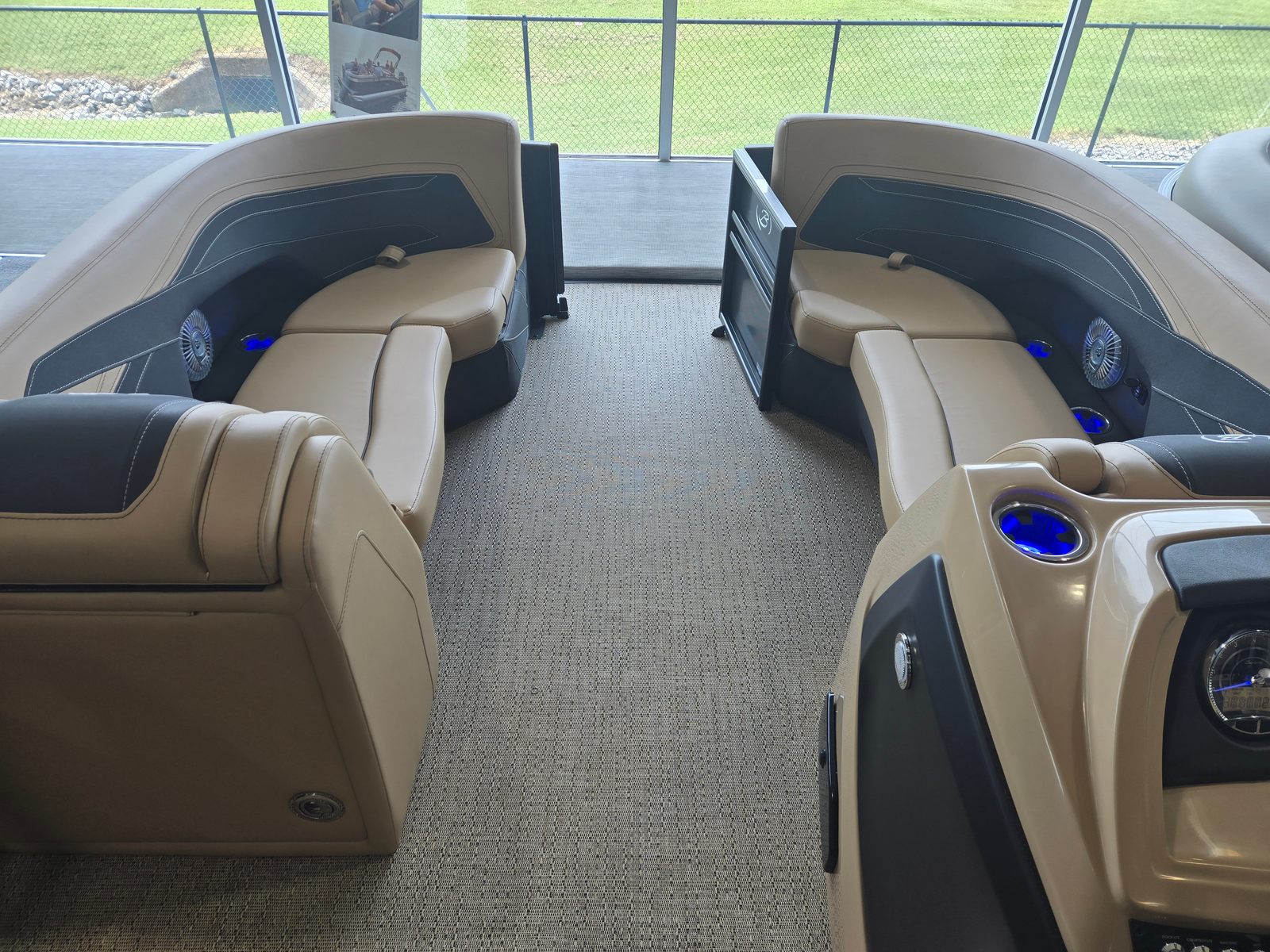 Step aboard the Cabrio C22UC and discover a world of comfort and convenience. The Black Diamond Railskin color, paired with the Blackout Package Cabrio, gives this pontoon a sleek, modern appearance that’s sure to turn heads at the marina. Inside, the Carmella Tan furniture with Onyx accents creates a warm, inviting atmosphere, while the Amore Tan flooring adds a touch of elegance and practicality.One of the standout features is the Triple Toon Package with midship storage, providing enhanced stability, performance, and ample space for your gear. The Sport Bimini canvas, installed in place of the standard bimini, offers superior shade and protection from the sun, ensuring you and your guests stay comfortable during long days on the water. The onboard battery charger with two batteries guarantees reliable power for all your electronics and accessories, so you can focus on enjoying your time afloat.