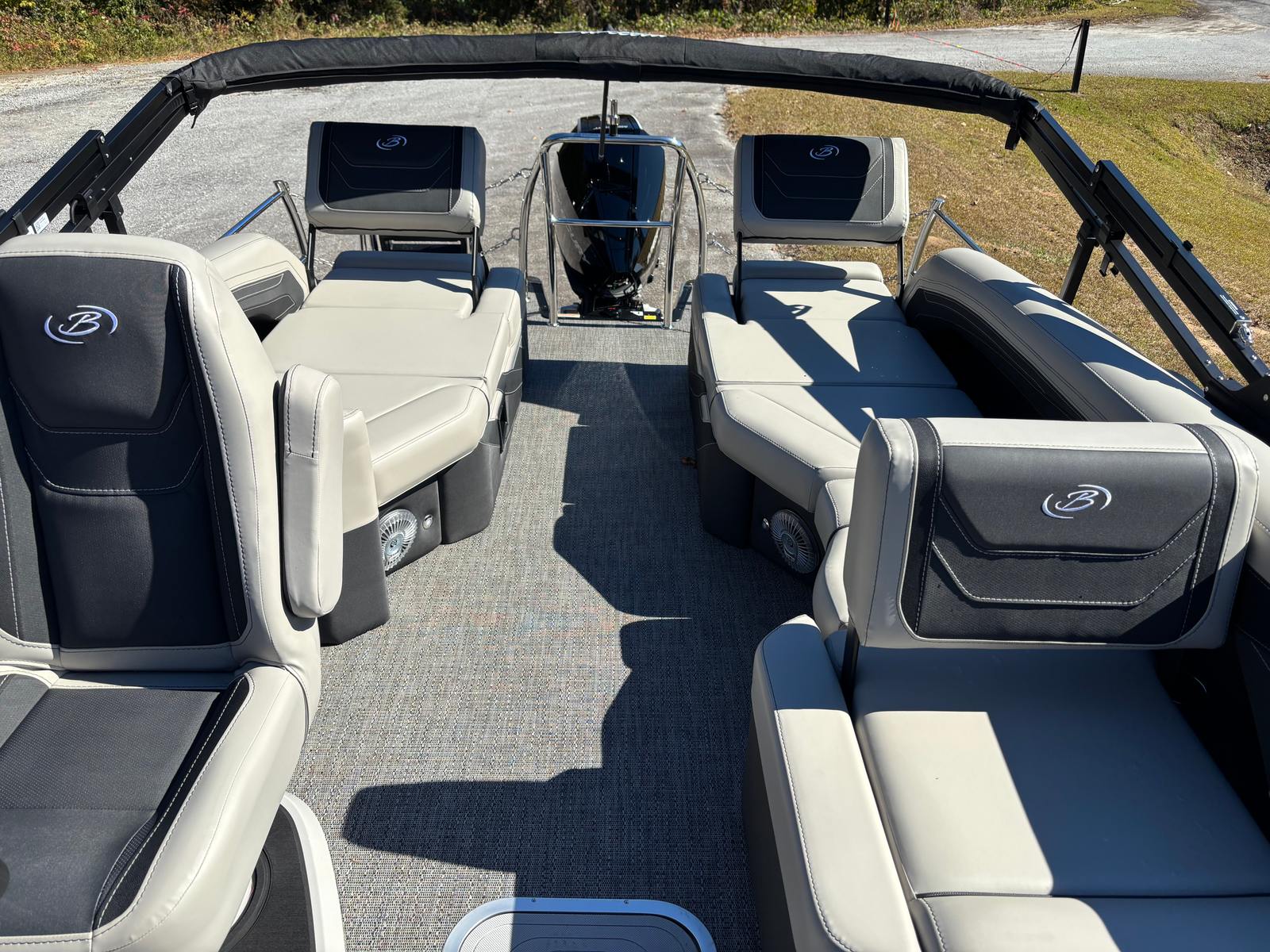 The 2026 Barletta Cabrio C24M is loaded with premium features that set it apart from other pontoon boats for sale. The striking Gray Moonstone railskin color, complemented by the Blackout Package Cabrio, gives this boat a sophisticated and modern look. Inside, the Marquesan Gray furniture with Onyx accents creates a luxurious and inviting atmosphere, while the Amore Gray flooring adds both style and durability.One of the standout features is the Triple Toon Package with midship storage, offering enhanced stability and additional space for your gear. The rigging includes a stainless steel prop, ensuring optimal performance and longevity. For those who appreciate attention to detail, the exterior is adorned with a stainless steel flag pole and an American flag, adding a touch of patriotic flair.The interior RGB lighting package transforms the ambiance of the boat, allowing you to set the mood for any occasion, from lively gatherings to peaceful evening cruises. Every element of the Cabrio C24M is thoughtfully designed to maximize comfort, convenience, and enjoyment on the water.