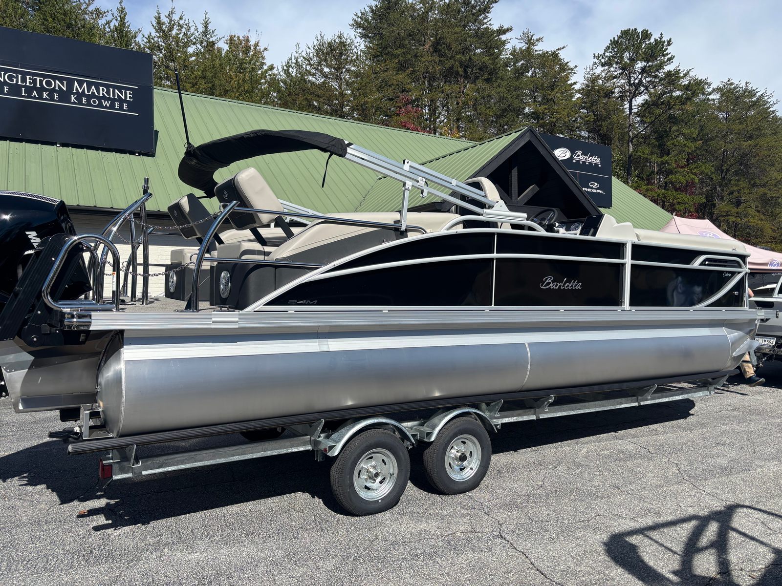 The 2026 Barletta Cabrio C24M is a testament to Barletta’s commitment to quality craftsmanship and thoughtful design. Measuring just over 25 feet in length, this pontoon offers ample space for relaxation, socializing, and making unforgettable memories on the water. Its sleek Black Diamond Railskin color and Marquesan Gray with Onyx furniture create a sophisticated and inviting atmosphere, ensuring you and your guests travel in style. As a new model, this Barletta boat for sale is ready to deliver years of reliable performance and enjoyment.