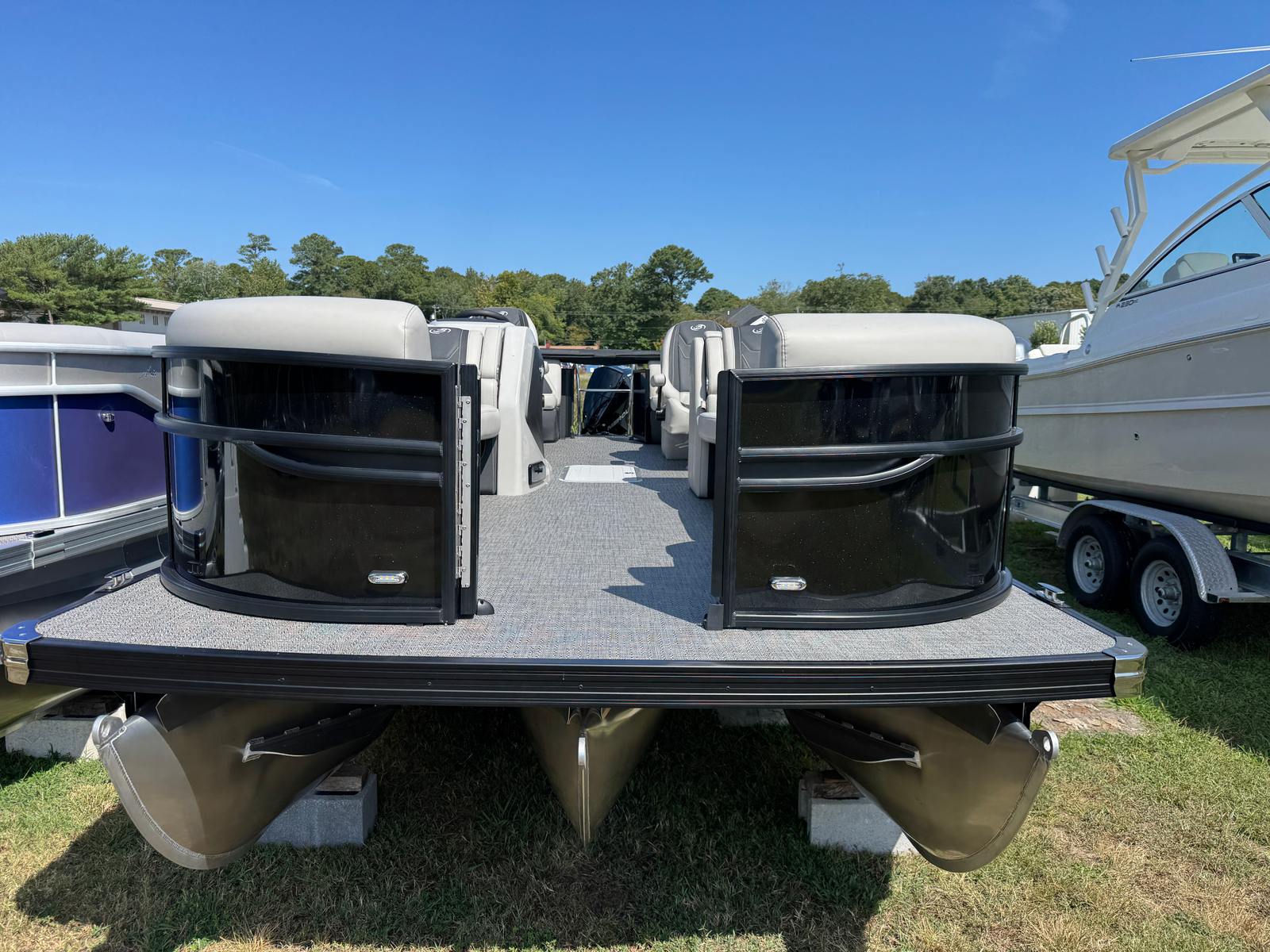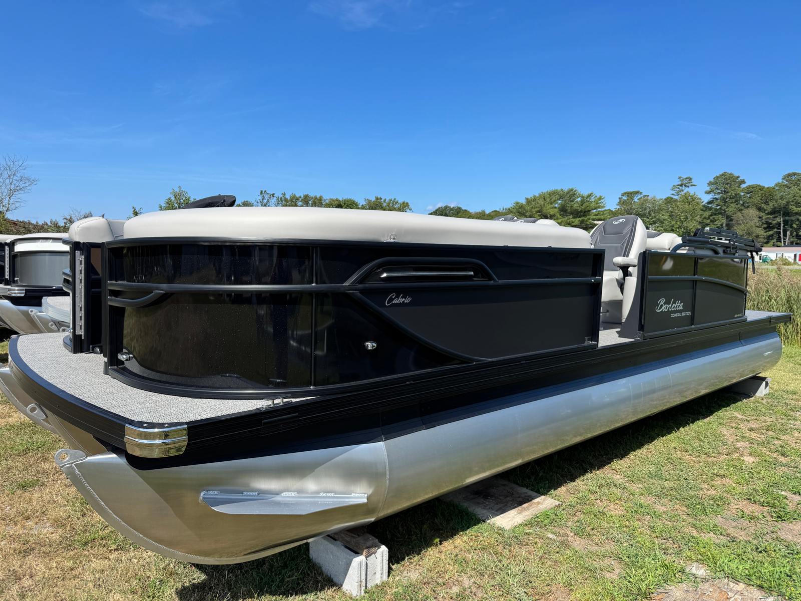 The 2026 Barletta Cabrio C24QC is a pontoon boat that measures an impressive 25.17 feet in length, offering ample space for relaxation, entertainment, and adventure. As a new model, it showcases the latest advancements in pontoon design and craftsmanship, ensuring you enjoy the very best in comfort and style. Barletta boats are renowned for their attention to detail, and the Cabrio C24QC is no exception, featuring a striking Black Diamond railskin color with a Matte Black accent and the exclusive Blackout Package Cabrio for a truly sophisticated look.