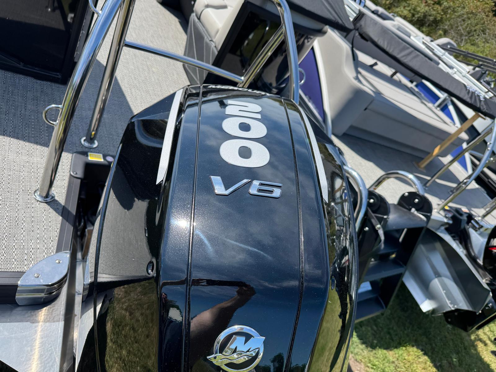 Powering this exceptional pontoon is a single Mercury (M) 200L FourStroke engine, delivering a robust 200 horsepower. This setup ensures smooth acceleration, reliable handling, and plenty of power for cruising, watersports, or simply enjoying a leisurely ride. The Mercury engine is paired with a stainless steel prop and features mechanical pre-rigging with power assist, making operation effortless and precise. Whether you’re navigating calm lakes or tackling more challenging waters, the Cabrio C24QC offers a responsive and enjoyable driving experience.