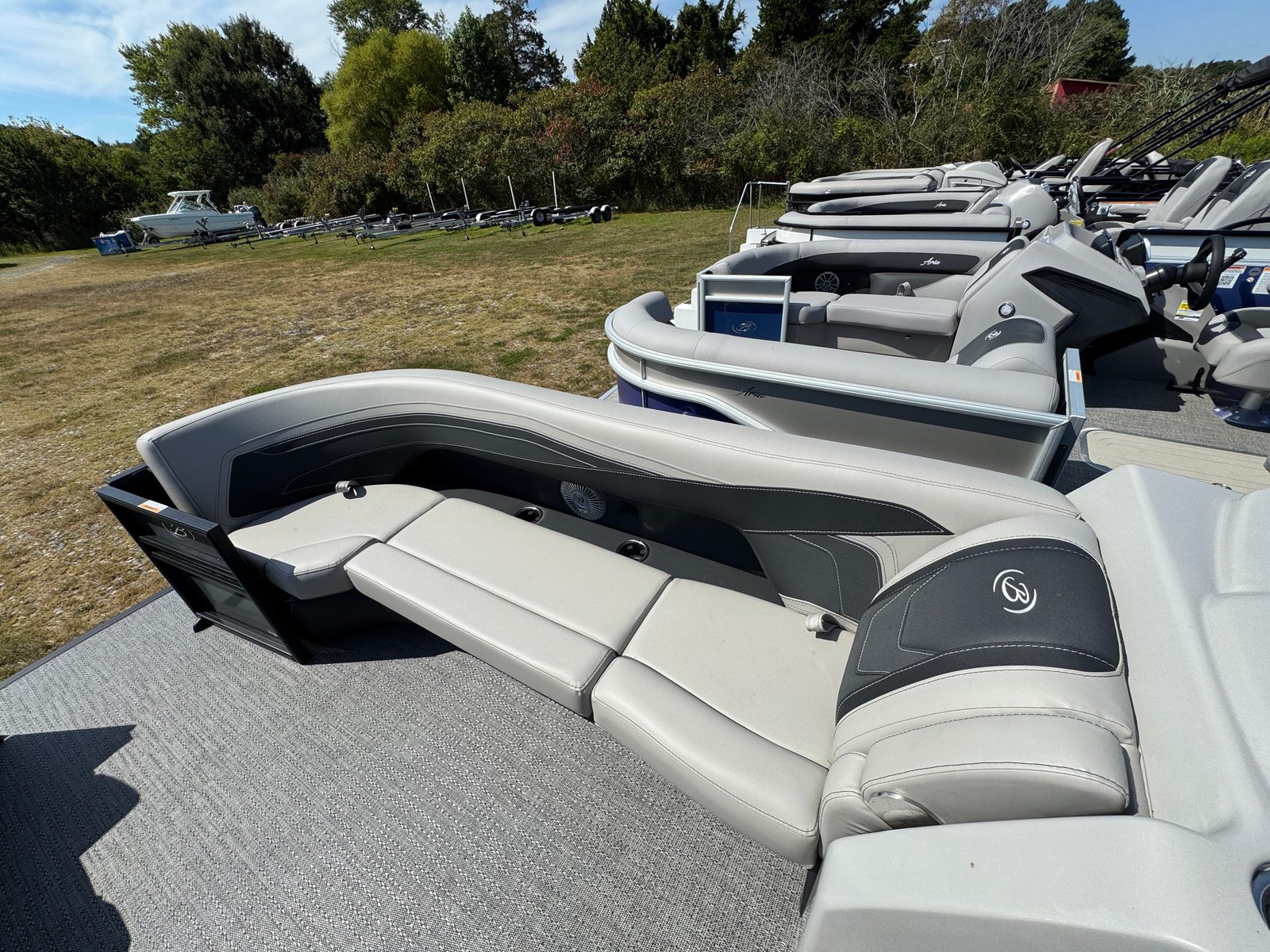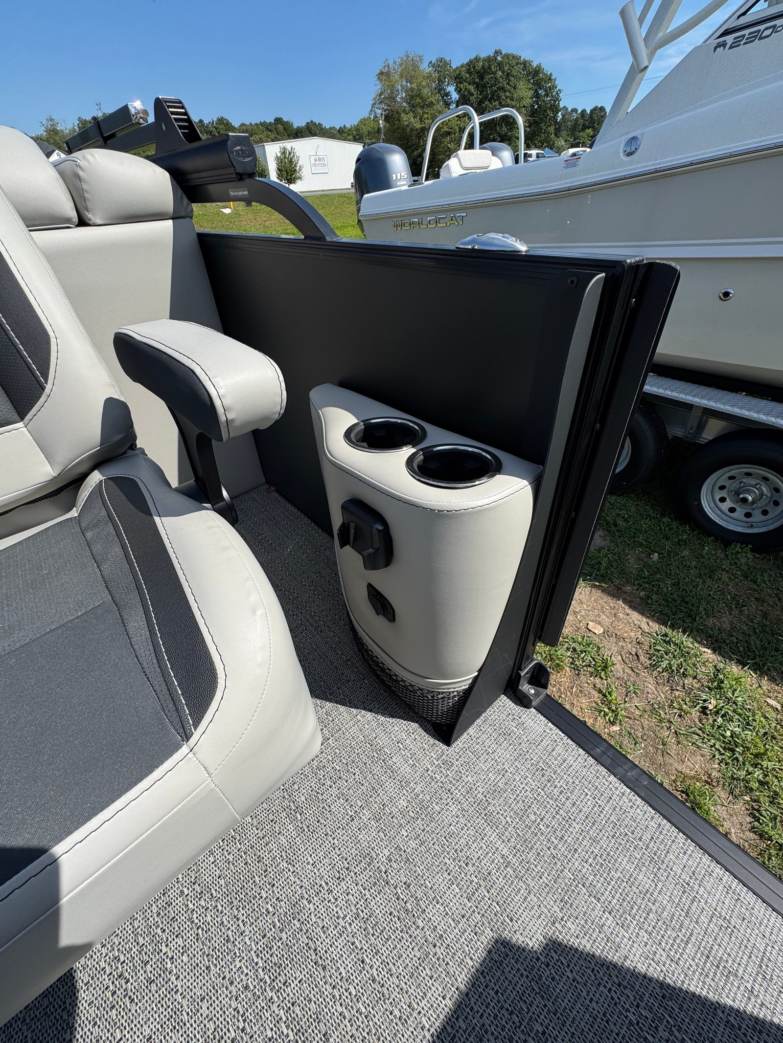 Step aboard the Barletta Cabrio C24QC and you’ll immediately notice its luxurious Marquesan Gray furniture with Onyx accents, providing both comfort and elegance. The Amore Gray flooring adds a touch of modern sophistication while ensuring durability and easy maintenance. This pontoon is part of the Coastal Edition Cabrio, designed to withstand the rigors of marine environments while maintaining its stylish appearance.One of the standout features is the Triple Toon Package with midship storage, offering enhanced stability, improved performance, and convenient storage options for all your gear. The blackout package not only elevates the boat’s aesthetic appeal but also provides a sleek, contemporary look that is sure to turn heads at the marina. Every detail, from the railskin color to the premium furniture, has been thoughtfully selected to create an inviting and upscale atmosphere.