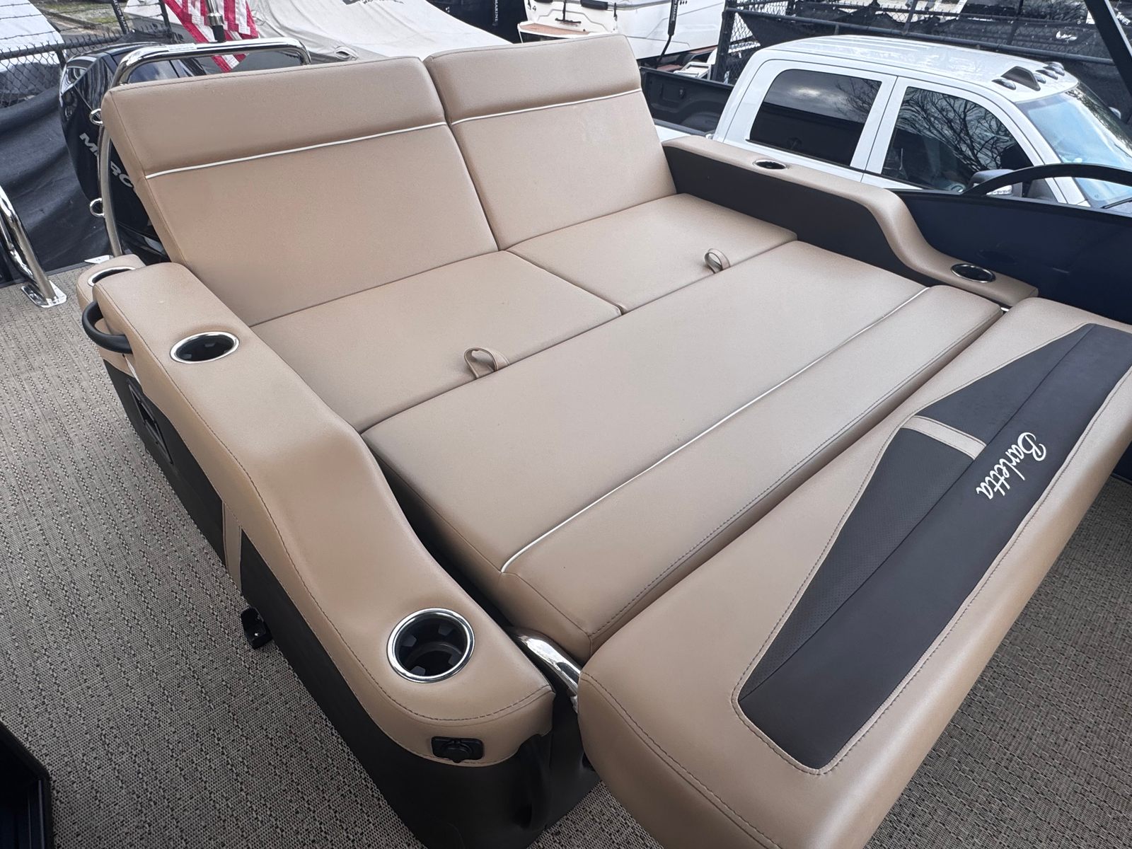 At the heart of the Barletta Cabrio C24UC is a powerful single engine delivering 200 horsepower. With just 16 engine hours, this pontoon boat promises reliable performance and longevity for many seasons to come. The robust engine ensures smooth acceleration, responsive handling, and the ability to cruise effortlessly across lakes, rivers, and coastal waters.Whether you are towing water toys, heading out for a day of fishing, or simply enjoying a leisurely cruise, the Cabrio C24UC’s performance capabilities make every outing memorable. The combination of power and efficiency means you can cover more water with confidence, while still enjoying the quiet, smooth ride that Barletta boats are known for.
