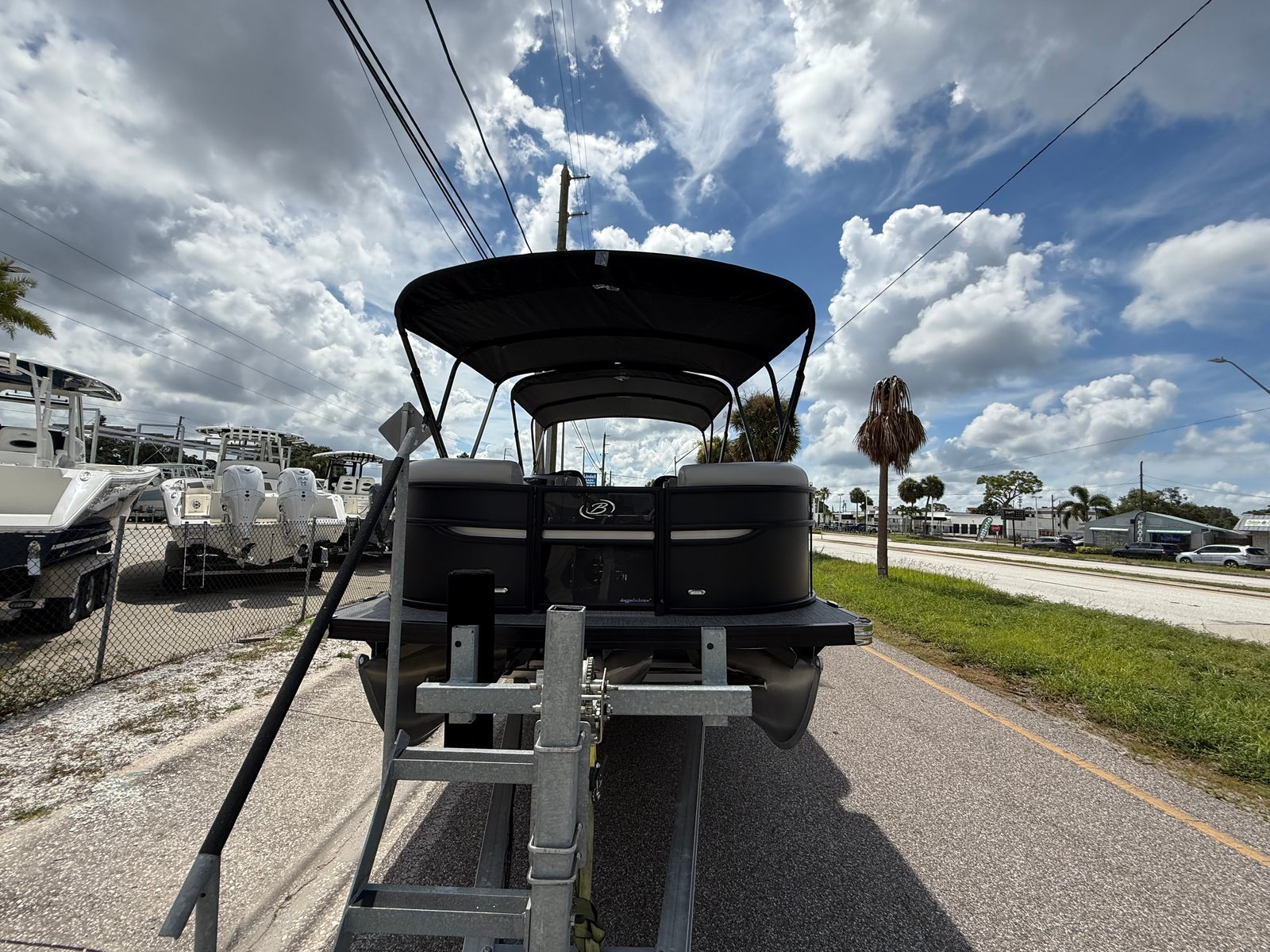 The 2026 Barletta Cabrio C24UC is packed with features designed to maximize comfort, convenience, and enjoyment. The Blackout Package Cabrio adds a bold, contemporary touch to the exterior, while the Coastal Edition Cabrio ensures durability and style in a variety of environments. The Triple Toon Package with midship storage provides enhanced stability and additional space for gear, making it easy to bring along everything you need for a day on the water. The combination of Marquesan Gray/Onyx furniture and Amore Gray flooring not only looks stunning but also offers a plush, comfortable setting for relaxing or entertaining. Digital gauges keep you informed at a glance, while the rigged engine with a stainless steel prop ensures optimal performance and longevity.
