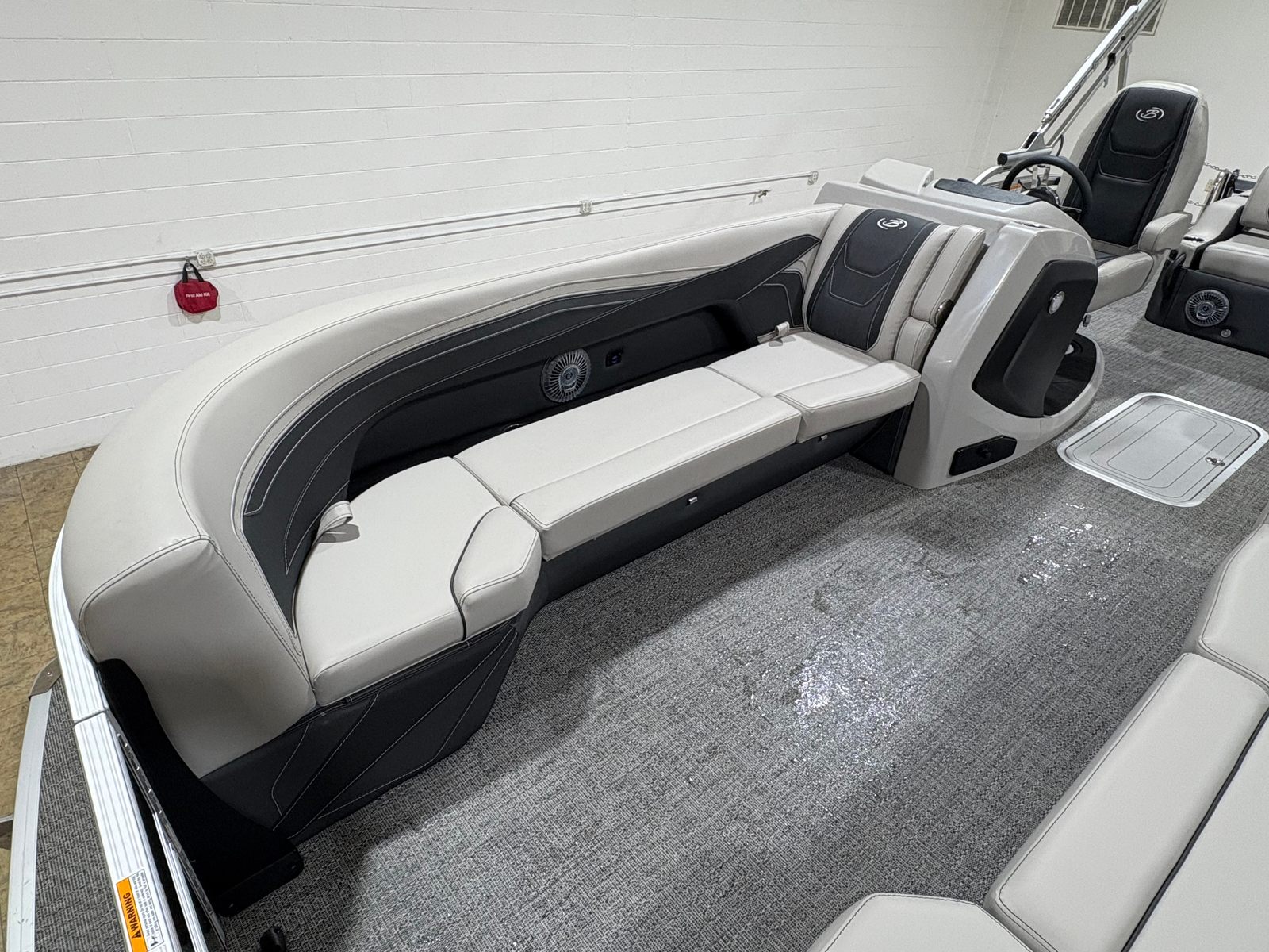 Step aboard the Barletta Cabrio C24UC and discover a world of premium features designed to elevate your time on the water. The Railskin Color in Gray Moonstone, accented with Champagne, gives the exterior a sophisticated and contemporary look. Inside, the Marquesan Gray furniture with Onyx accents offers plush seating and a refined ambiance, complemented by Amore Gray flooring that’s both stylish and easy to maintain.The Triple Toon Package with midship storage is a standout feature, providing enhanced stability, improved handling, and ample space for storing gear, water toys, or picnic essentials. The Mercury Digital DTS Pre-Rig and Vessel Link system ensure that your engine is ready for peak performance, while hydraulic and power assist steering make every journey smooth and effortless. Digital gauges keep you informed and in control, and the rigged engine with a stainless steel prop delivers reliable power and efficiency.On the exterior, you’ll find thoughtful touches like a stainless steel flag pole with an American flag, adding a patriotic flair, and stainless steel safety stanchions with chains for added security and peace of mind. Every detail of this pontoon boat has been carefully considered to maximize comfort, safety, and enjoyment.