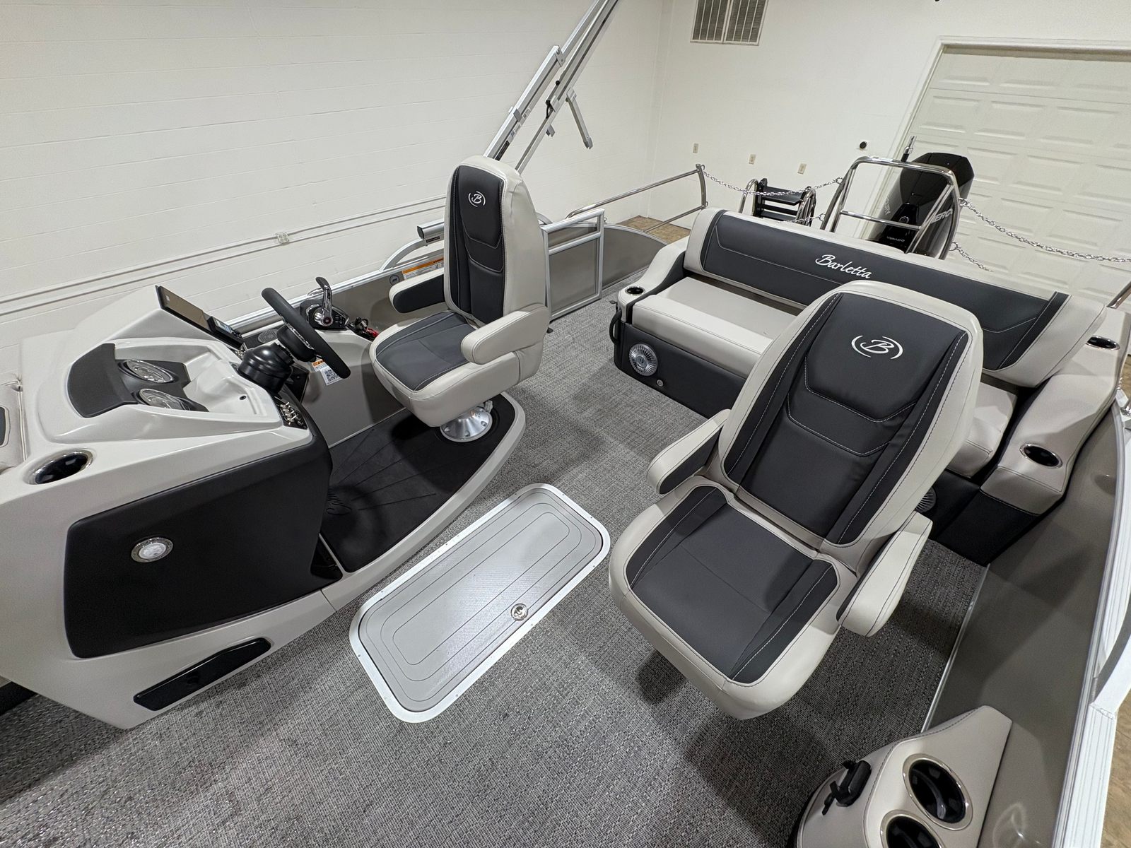 Owning the Barletta Cabrio C24UC means embracing a lifestyle of relaxation, adventure, and social connection. The spacious deck layout is perfect for entertaining guests, hosting family gatherings, or simply unwinding in the sun. The plush Marquesan Gray seating invites you to lounge in comfort, while the ample floor space allows for easy movement and versatile seating arrangements.The triple toon design not only enhances stability but also ensures a smooth, dry ride, even in choppy conditions. With midship storage, you’ll have plenty of room to stow away life jackets, coolers, fishing gear, and other essentials, keeping the deck clutter-free and organized. The advanced steering and digital controls make piloting this pontoon a breeze, whether you’re a seasoned captain or new to boating.