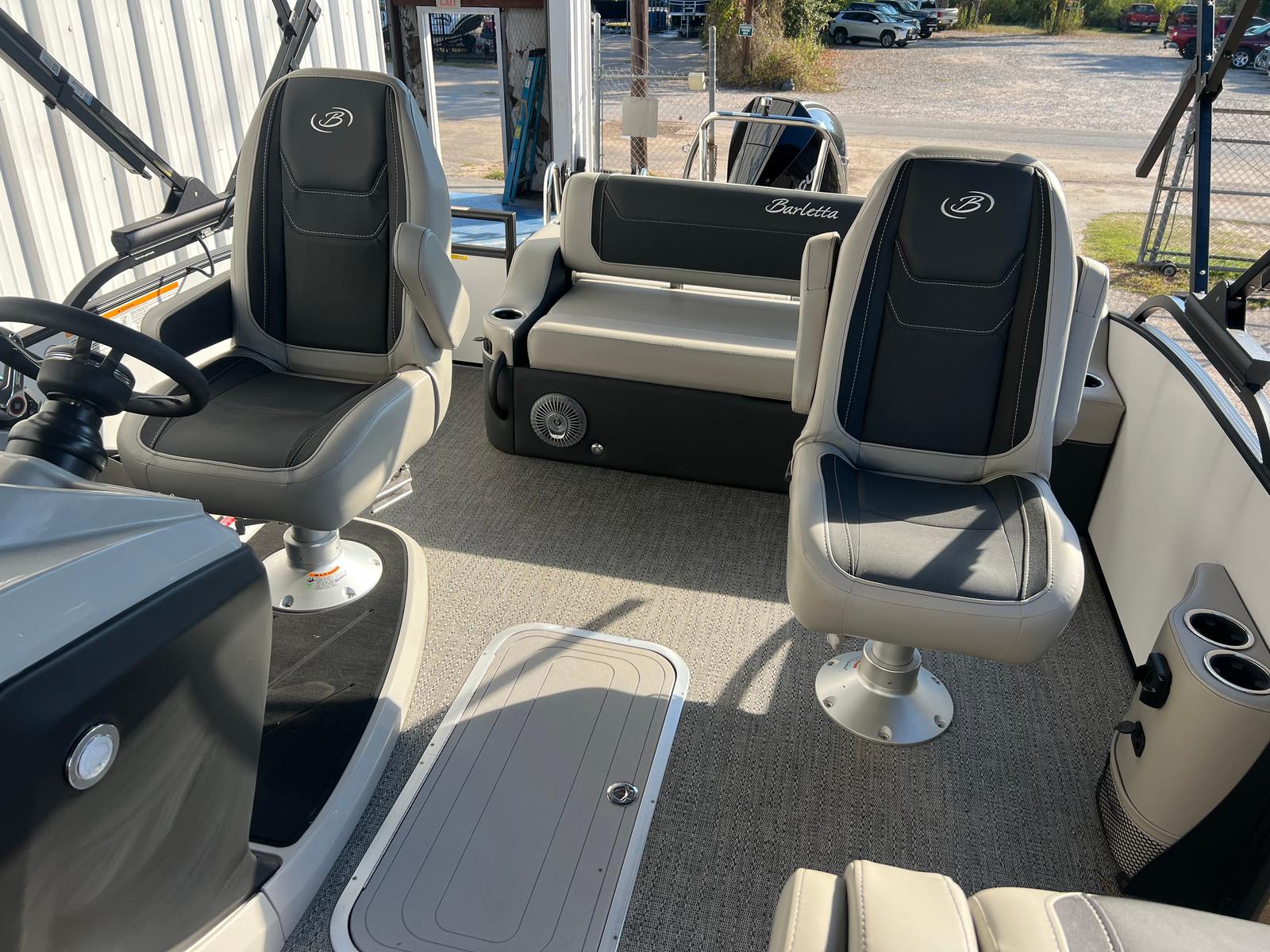 Owning the Barletta Cabrio C24UC pontoon boat means embracing a lifestyle of fun, relaxation, and adventure. The spacious layout and luxurious furniture invite you to stretch out and enjoy the ride, whether you’re hosting a lively gathering or seeking a peaceful escape. The advanced engine and steering systems make every journey smooth and enjoyable, while the triple toon package ensures stability even in choppy conditions. The midship storage keeps your essentials organized and accessible, so you can focus on making memories. With its eye-catching design and premium finishes, this Barletta boat for sale is sure to impress guests and provide endless enjoyment for you and your loved ones.