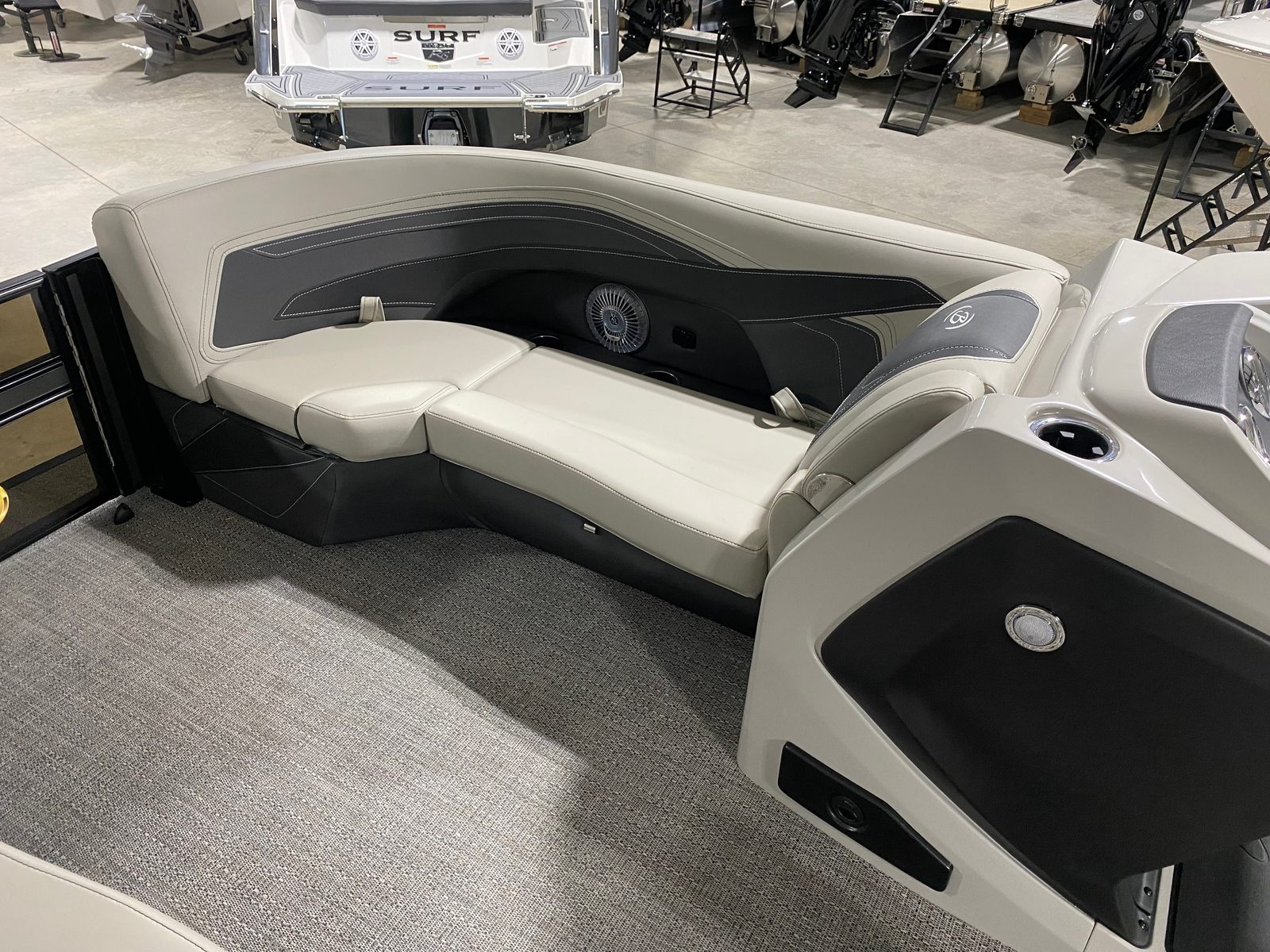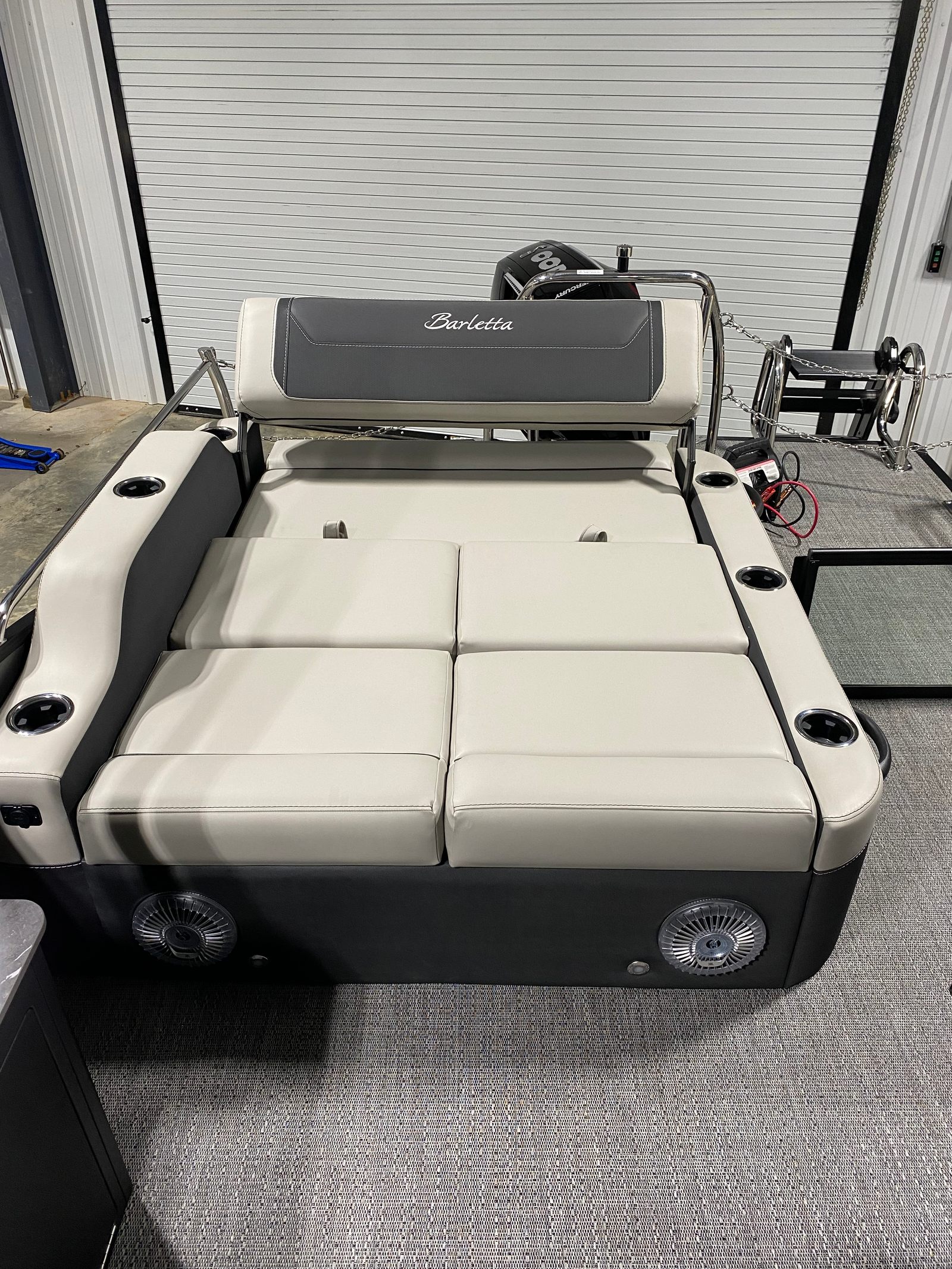 At the heart of the Cabrio C24UE is a powerful Mercury 200L FourStroke engine, delivering 200 horsepower for smooth, responsive handling and exhilarating speed. Whether you’re cruising leisurely or heading out for a day of watersports, this engine provides the perfect balance of efficiency and performance. The Pre-Rig Mercury mechanical system with power assist ensures effortless control, making docking and maneuvering a breeze. With the Triple Toon Package featuring midship storage, this Barletta boat for sale offers enhanced stability and buoyancy, allowing you to glide across the water with confidence and comfort.