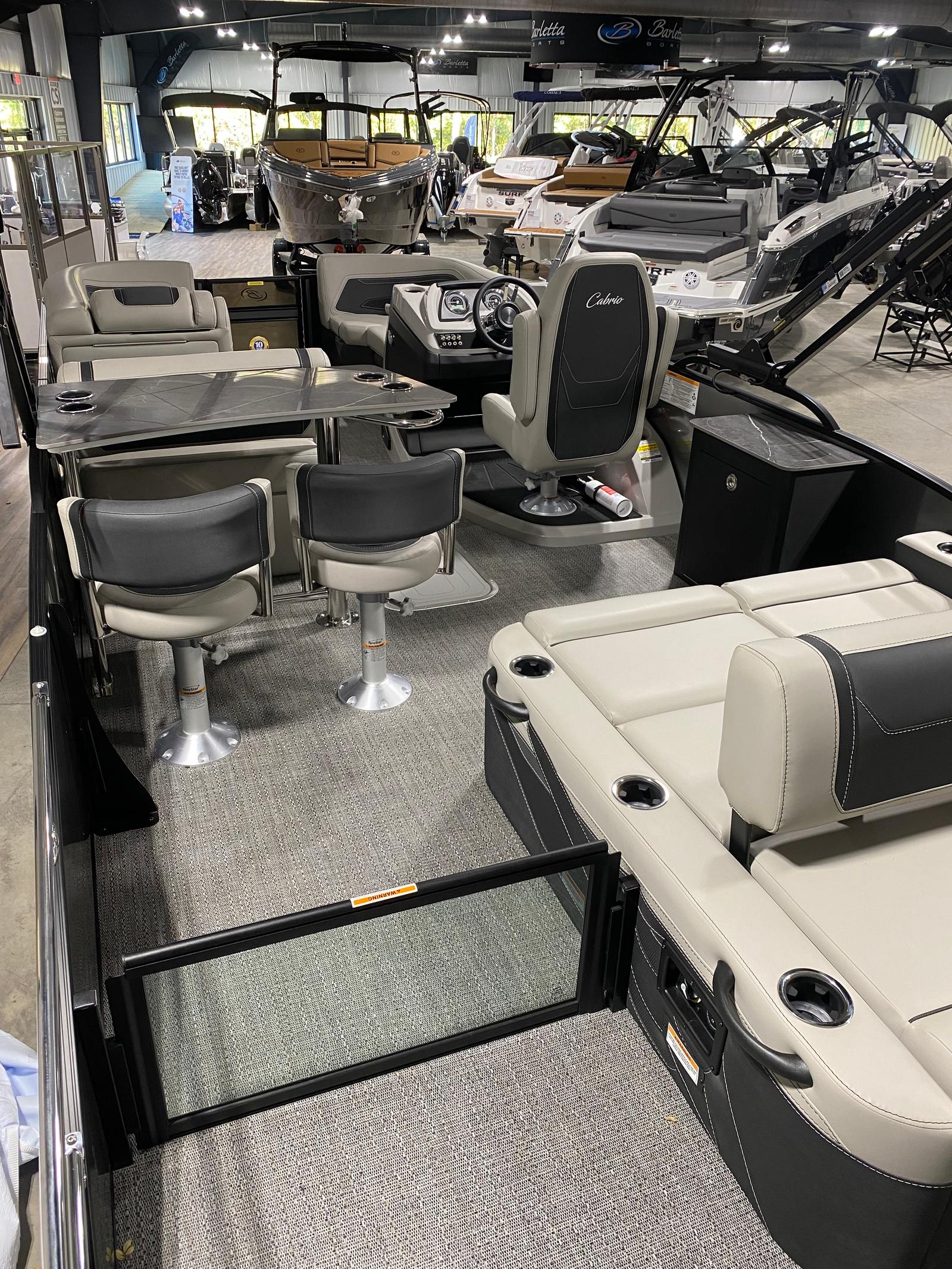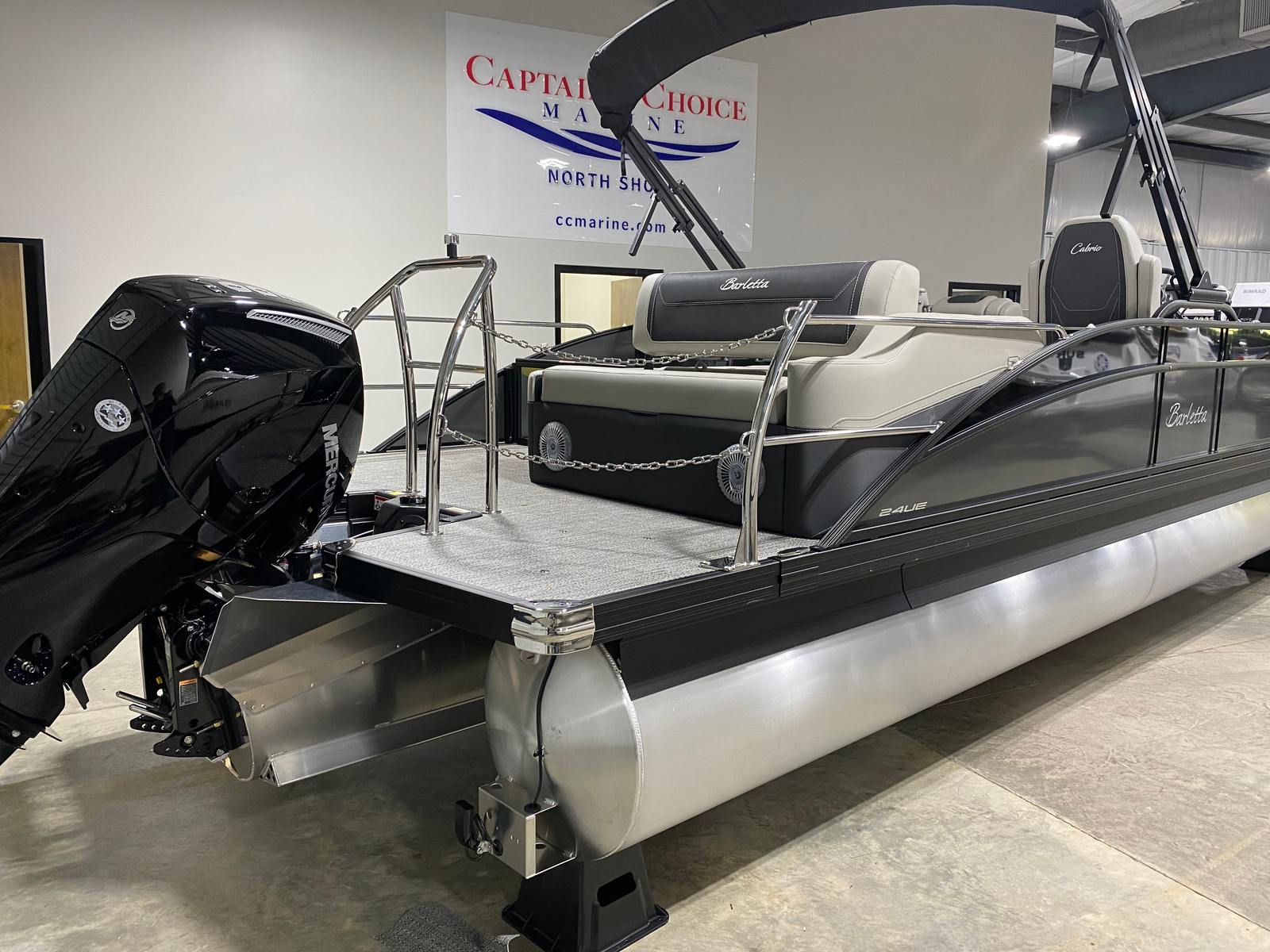 The 2026 Barletta Cabrio C24UE pontoon boat is a remarkable blend of innovation, elegance, and power. With its Mercury 200L FourStroke engine, striking Black Diamond and Gray Moonstone railskin, Blackout Package Cabrio, Marquesan Gray with Onyx furniture, Amore Gray flooring, Triple Toon Package with midship storage, and stainless steel flag pole with American flag, this pontoon is designed to impress and perform. If you’re searching for a Barletta boat for sale that offers unmatched comfort, versatility, and style, the Cabrio C24UE is your gateway to endless fun and relaxation on the water. Contact your local dealer today to learn more and experience the thrill of owning this exceptional pontoon boat.