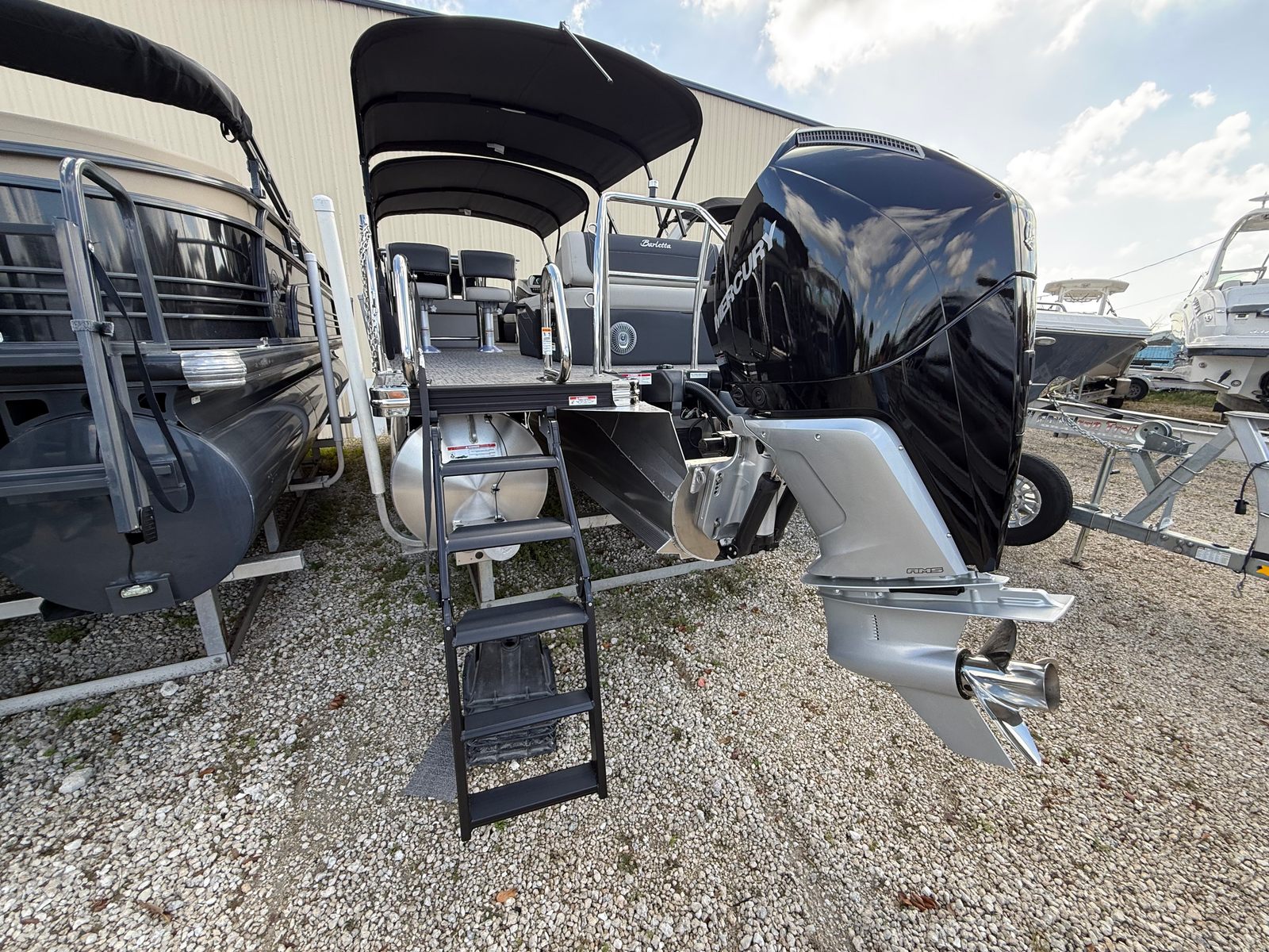 Powering the Barletta Cabrio C24UE is a robust Mercury (D) 200L FourStroke DTS engine, delivering an impressive 250 horsepower. This setup provides smooth, reliable performance whether you’re cruising, towing water toys, or exploring new coves. The Mercury Digital DTS Pre-Rig for VERADO engines with Vessel Link ensures seamless integration and precise control, while the hydraulic and power assist steering make handling effortless, even in tight quarters. The triple toon package with midship storage enhances stability and ride quality, allowing you to glide across the water with confidence and comfort.