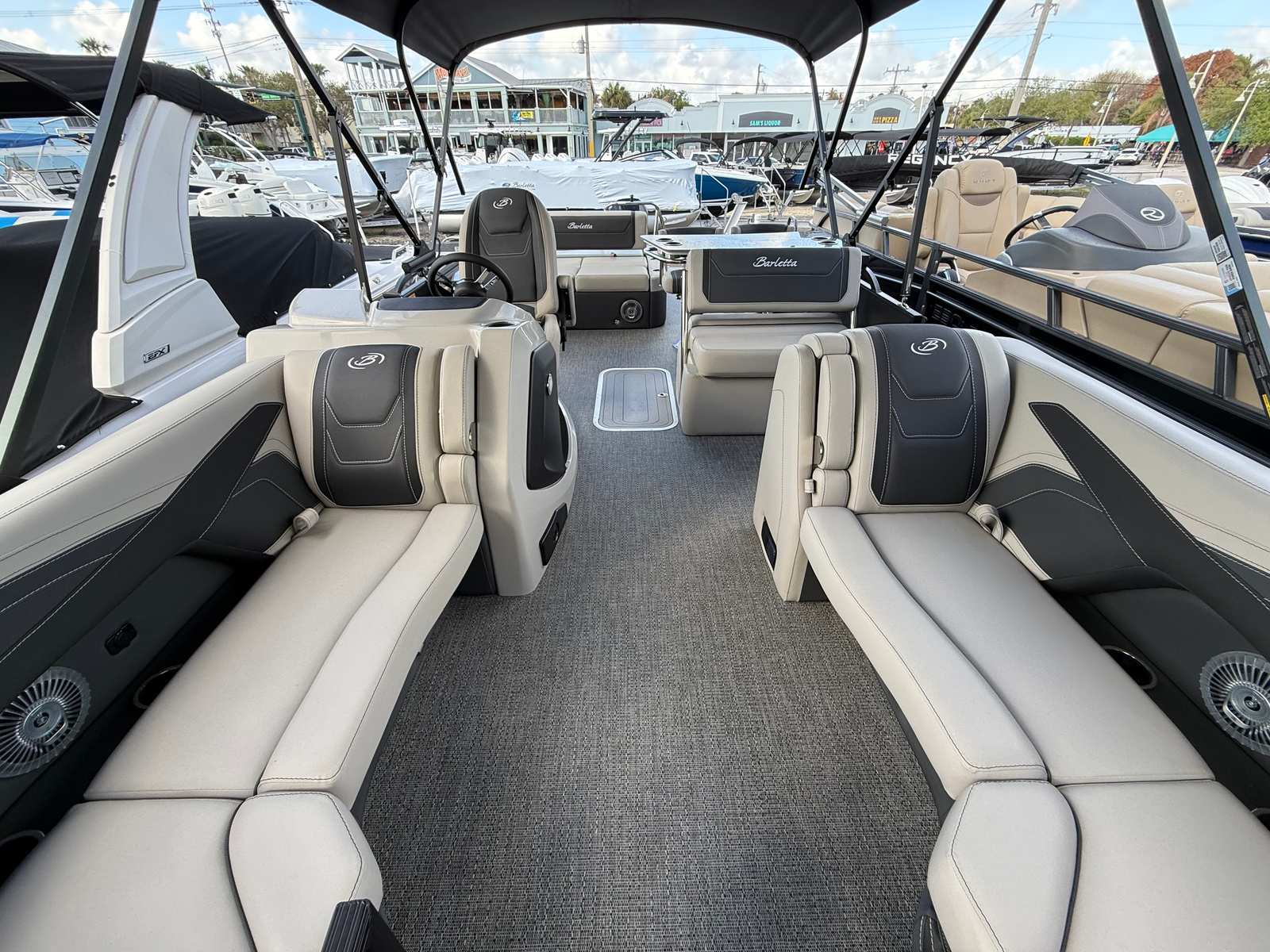 The Barletta Cabrio C24UE is as practical as it is luxurious. The triple toon package with midship storage provides ample room for water toys, fishing gear, and personal items, keeping your deck clutter-free and organized. Hydraulic and power assist steering make docking and maneuvering a breeze, even for less experienced boaters. The Mercury engine’s fuel efficiency means you can spend more time enjoying the water and less time at the pump.Digital gauges and advanced controls simplify operation, allowing you to focus on fun rather than fussing with complicated systems. The durable Coastal Edition Cabrio construction ensures your investment is protected, whether you’re boating in freshwater lakes or coastal environments.