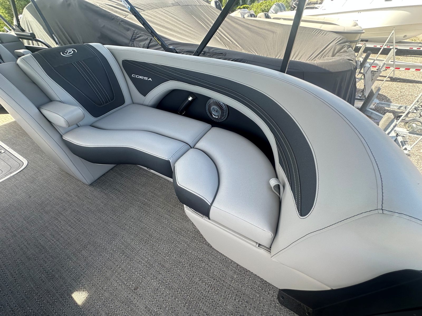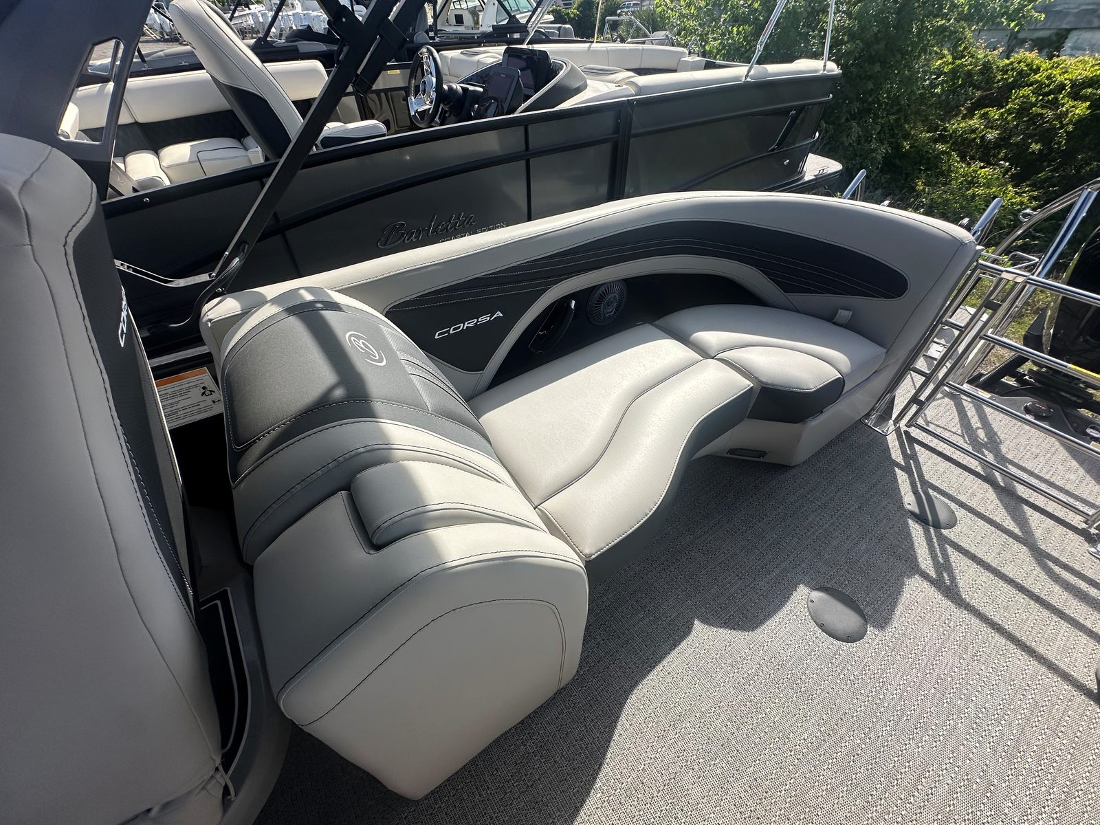 In summary, the 2026 Barletta Corsa 23QCSS is a standout pontoon boat for sale that combines cutting-edge performance, luxurious comfort, and striking design. With its powerful Mercury 250L Verado V8 engine, advanced steering and digital controls, and a host of premium features including the Blackout Package Corsa, Soft Touch Marquesan Gray furniture, Amore Gray flooring, and double bimini setup, this boat is built for those who demand the best.Whether you are seeking adventure, relaxation, or a stylish way to entertain on the water, the Barletta Corsa 23QCSS delivers on all fronts. Don’t miss the opportunity to own a Barletta boat for sale that truly stands out from the crowd. Contact your local dealer today to learn more about this exceptional pontoon and start planning your next great escape on the water.