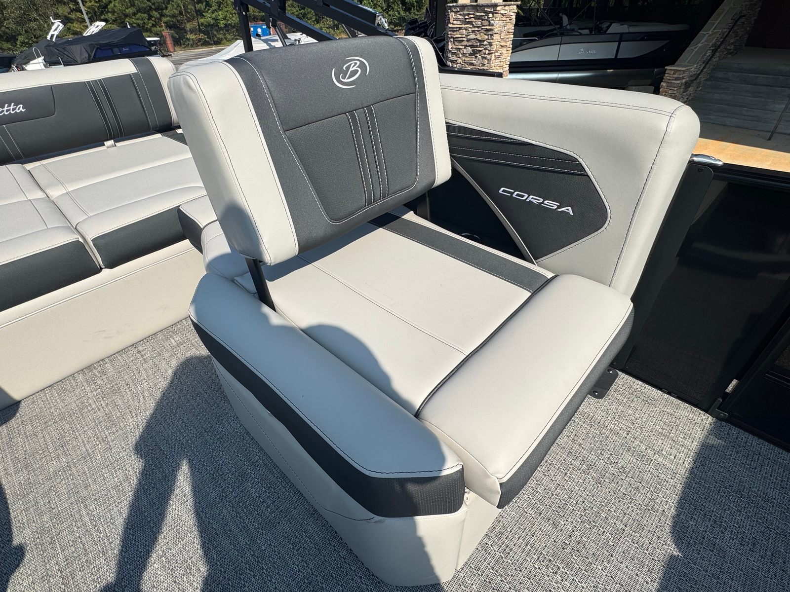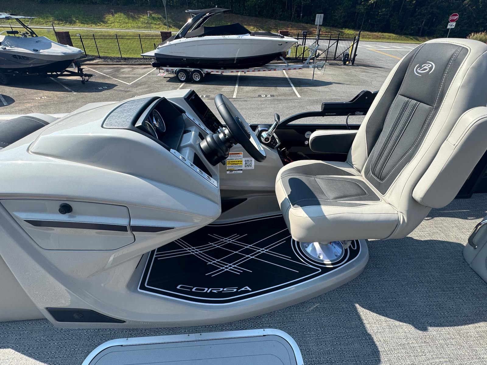 The Barletta Corsa 23U excels in practicality as much as it does in style. Its spacious design offers ample room for gear, coolers, and water toys, making it easy to prepare for any outing. The hydraulic and power assist steering simplify docking and maneuvering, even for novice boaters, while the efficient Mercury 250L Verado V8 engine helps maximize fuel economy without sacrificing performance.The durable flooring and high-quality furniture are built to withstand the rigors of active use, ensuring your investment remains in top condition season after season. The advanced helm features, including Simrad engine integration and digital gauges, provide intuitive control and monitoring, so you can focus on enjoying your time on the water. Exterior lighting enhances safety and visibility, making evening returns to the dock stress-free and enjoyable.