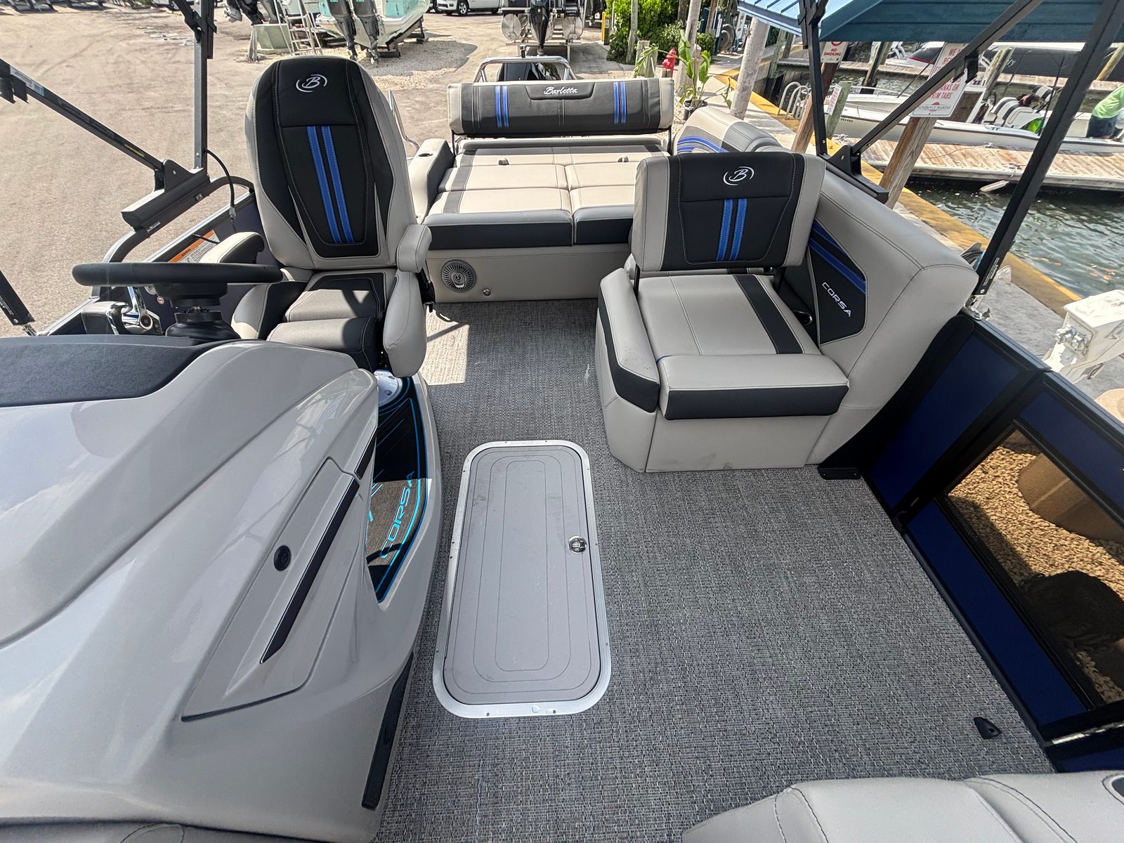 In summary, the 2026 Barletta Corsa 23U pontoon boat for sale is a standout choice for those who demand the best in boating. With its powerful Mercury 250L Verado V8 engine, striking Bohemian Blue railskin, luxurious Soft Touch Marquesan Gray furniture, and a host of premium features—including the Blackout Package Corsa, Coastal Edition Corsa, and advanced sound system—this pontoon delivers unmatched style, comfort, and performance. Whether you’re planning family outings, entertaining friends, or exploring new waters, the Barletta Corsa 23U is ready to make every moment on the water unforgettable.Don’t miss your chance to own this exceptional Barletta boat for sale. Experience the perfect blend of luxury, versatility, and fun—contact the dealer today to learn more and start your next adventure on the water!