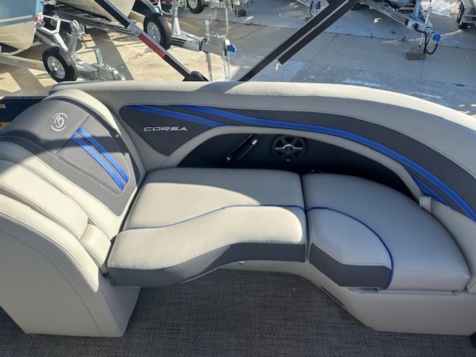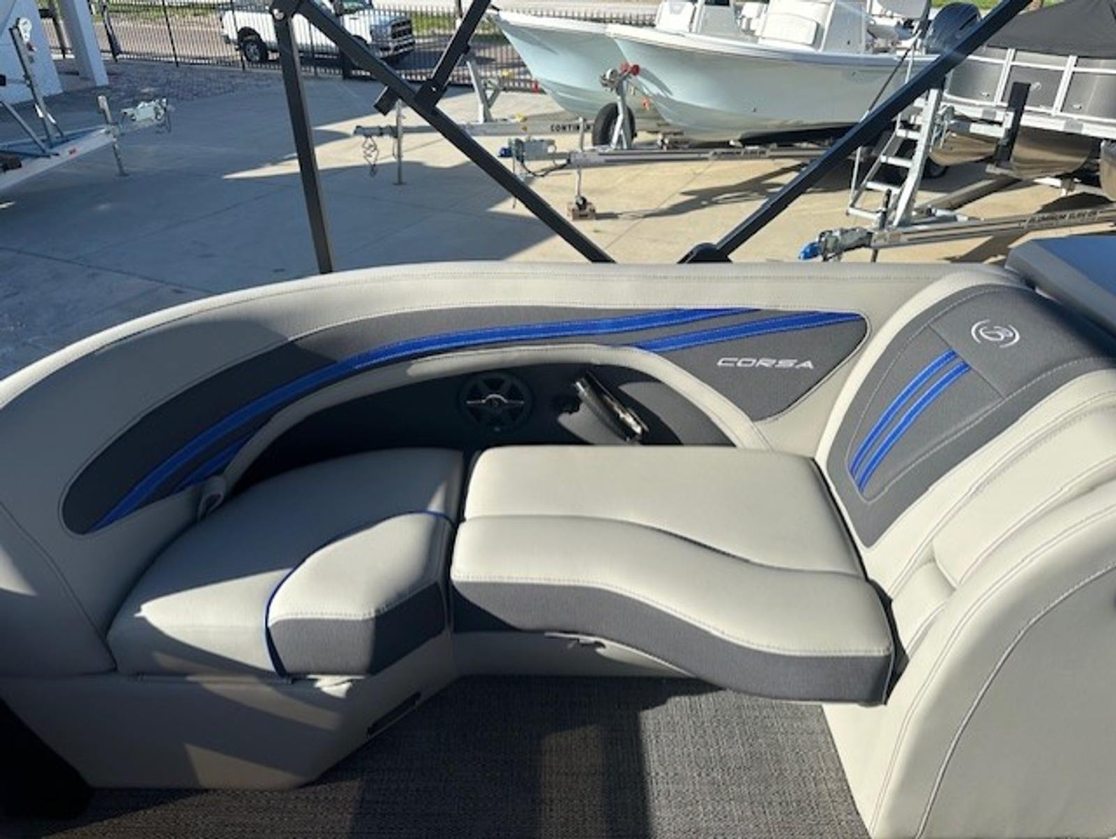 The 2025 Barletta Corsa 23UC pontoon boat is a standout choice for anyone seeking a new pontoon boat for sale that combines performance, luxury, and practicality. With its powerful 250-horsepower engine, double bimini system, power assist steering, and striking Blue Sapphire Railskin, this boat is designed to impress both on and off the water. The thoughtful features, such as anchor storage, stainless steel safety stanchions, and elegant lighting, ensure every outing is safe, comfortable, and memorable.If you are ready to elevate your boating lifestyle and enjoy endless days of fun, relaxation, and adventure, the Barletta Corsa 23UC is the perfect vessel to make it happen. Contact your local dealer today to learn more about this exceptional Barletta boat for sale and start planning your next great escape on the water.