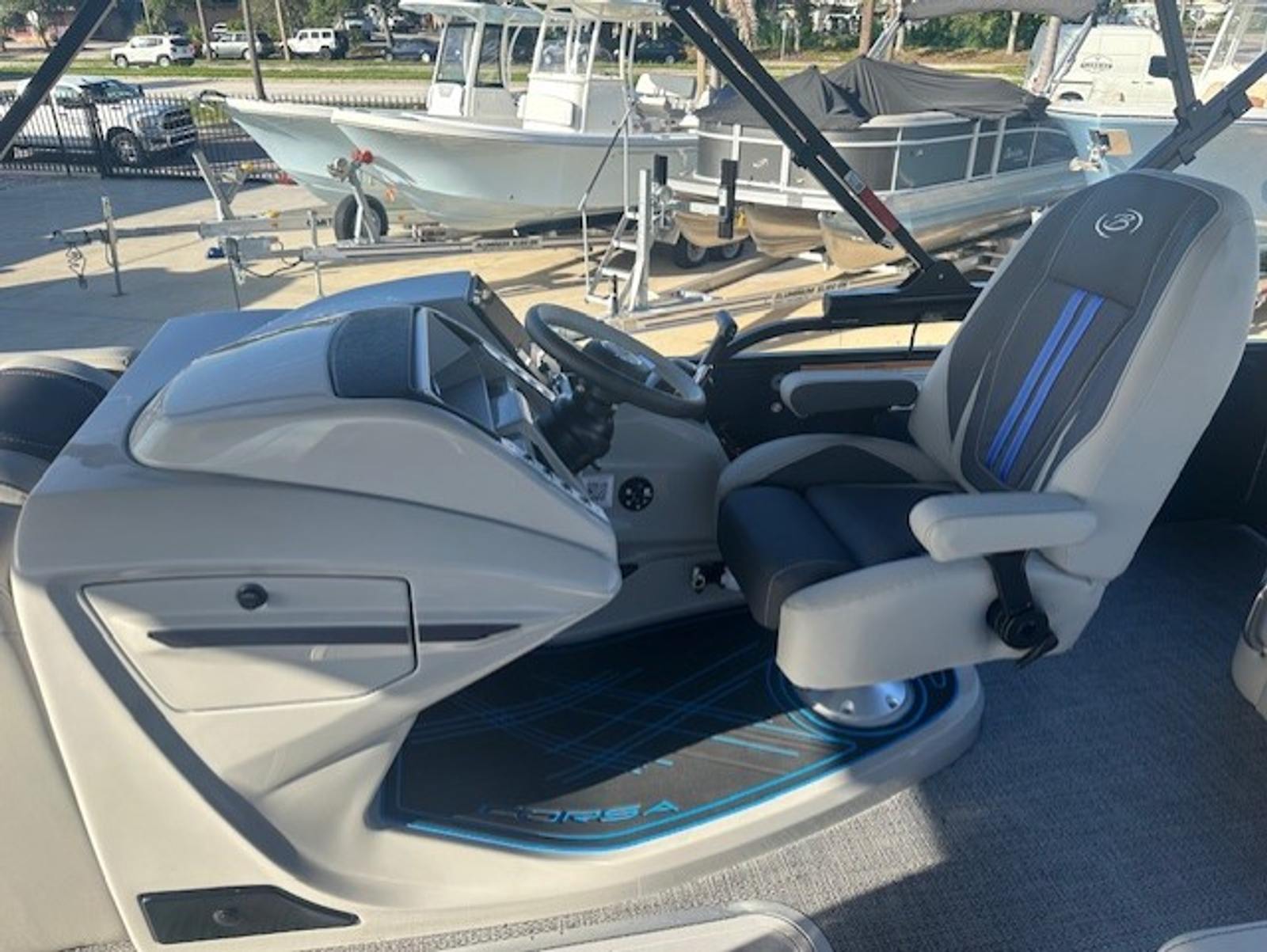 At the heart of the Barletta Corsa 23UC is a powerful single engine boasting 250 horsepower, providing the muscle you need for exhilarating rides and smooth cruising. The rigged engine is paired with a stainless steel prop, ensuring optimal efficiency and reliability. Whether you are gliding across calm lakes or powering through open waters, this pontoon offers responsive handling and impressive acceleration. The inclusion of power assist steering (requiring hydraulic steering) makes maneuvering effortless, allowing you to navigate tight marinas or busy waterways with confidence and ease.