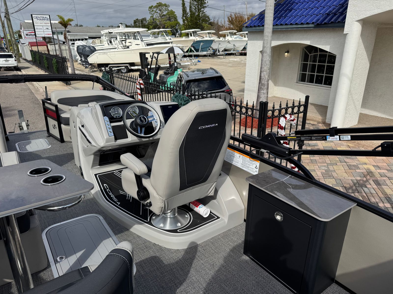 The 2026 Barletta Corsa 25UE is a 27-foot pontoon boat that exudes sophistication and style. As a new model, it features the latest advancements in pontoon design and technology, making it a top contender among Barletta boats for sale. The spacious layout provides ample room for entertaining, lounging, and enjoying the open water. Whether you are planning a day of cruising, watersports, or simply soaking up the sun, the Corsa 25UE offers the perfect platform for all your boating adventures.