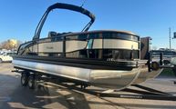 OverviewThe 2026 Barletta Lusso L25UE is a testament to modern pontoon engineering, offering a generous length of 27.5 feet. This spacious layout ensures ample room for relaxation, socializing, and enjoying the open water. The Lusso series is renowned for its attention to detail, and the L25UE model is no exception. With its sleek Black Diamond sweep color, Champagne accent, and Blackout Package Lusso railskin, this pontoon boat exudes sophistication from bow to stern. The Carmella Tan with Onyx furniture and Amore Tan flooring create a warm, inviting atmosphere that is perfect for both lively gatherings and peaceful escapes.