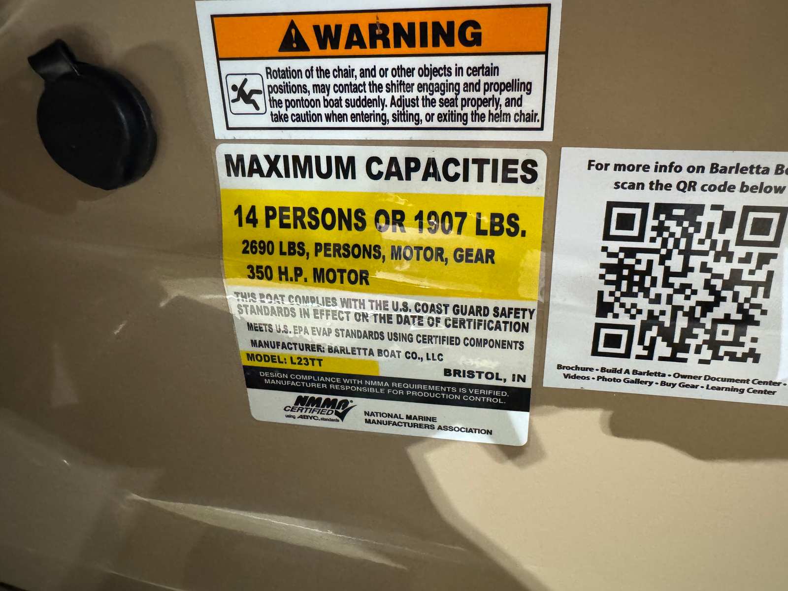 Powering this Barletta pontoon is a single, impressive 300-horsepower engine. This setup provides a thrilling blend of power and efficiency, allowing you to cruise effortlessly across the water or pick up speed for exhilarating rides. The Lusso L23M’s engine is engineered for smooth acceleration and reliable performance, ensuring that every journey is as enjoyable as the destination. Whether you are gliding across calm waters or navigating busier waterways, the Lusso L23M delivers a responsive and confident ride.