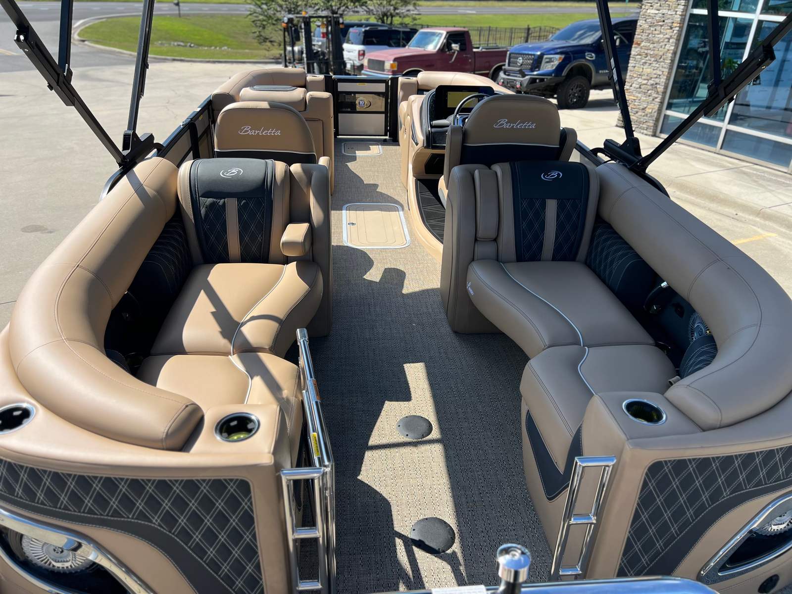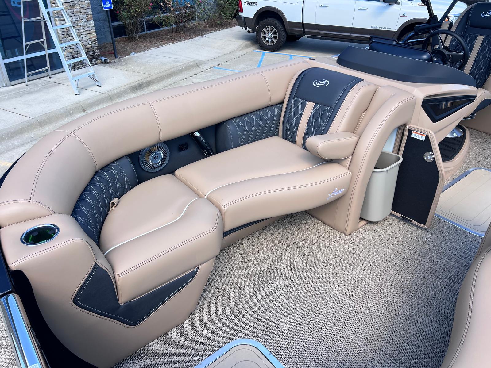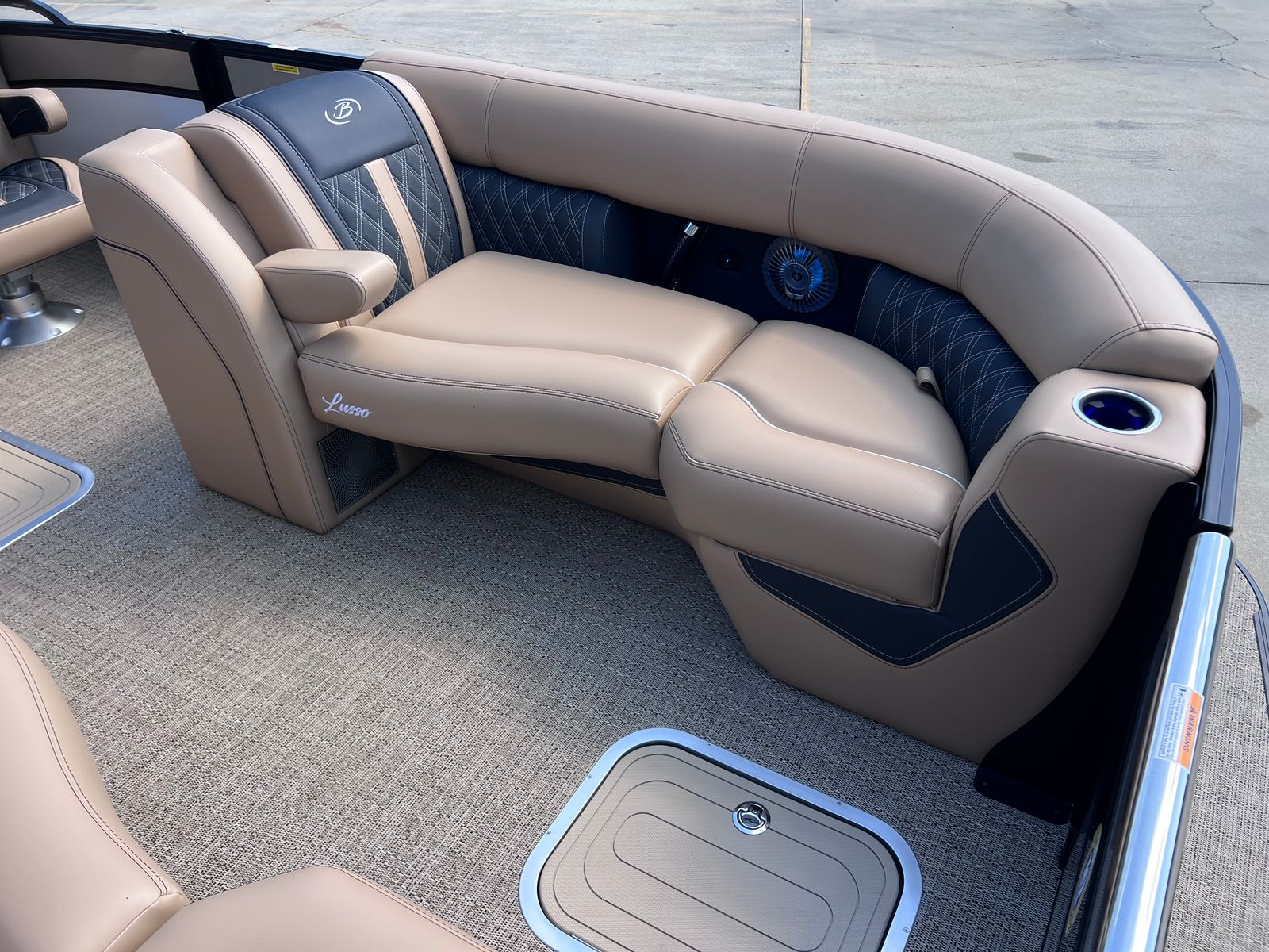 The Barletta Lusso L23QCSS is packed with premium features that enhance both comfort and convenience. Digital gauges provide clear, real-time information at a glance, allowing you to monitor your boat’s performance with ease. The rigging includes a stainless steel prop for durability and efficiency, while the on-board battery charger with two batteries ensures you’re always ready to go. Exterior protection is provided by the Metal Jacket Protectant, helping to maintain the boat’s pristine appearance season after season. Every detail, from the luxurious Carmella Tan with Onyx furniture to the Amore Tan flooring, is designed to create an inviting space for relaxation and socializing.