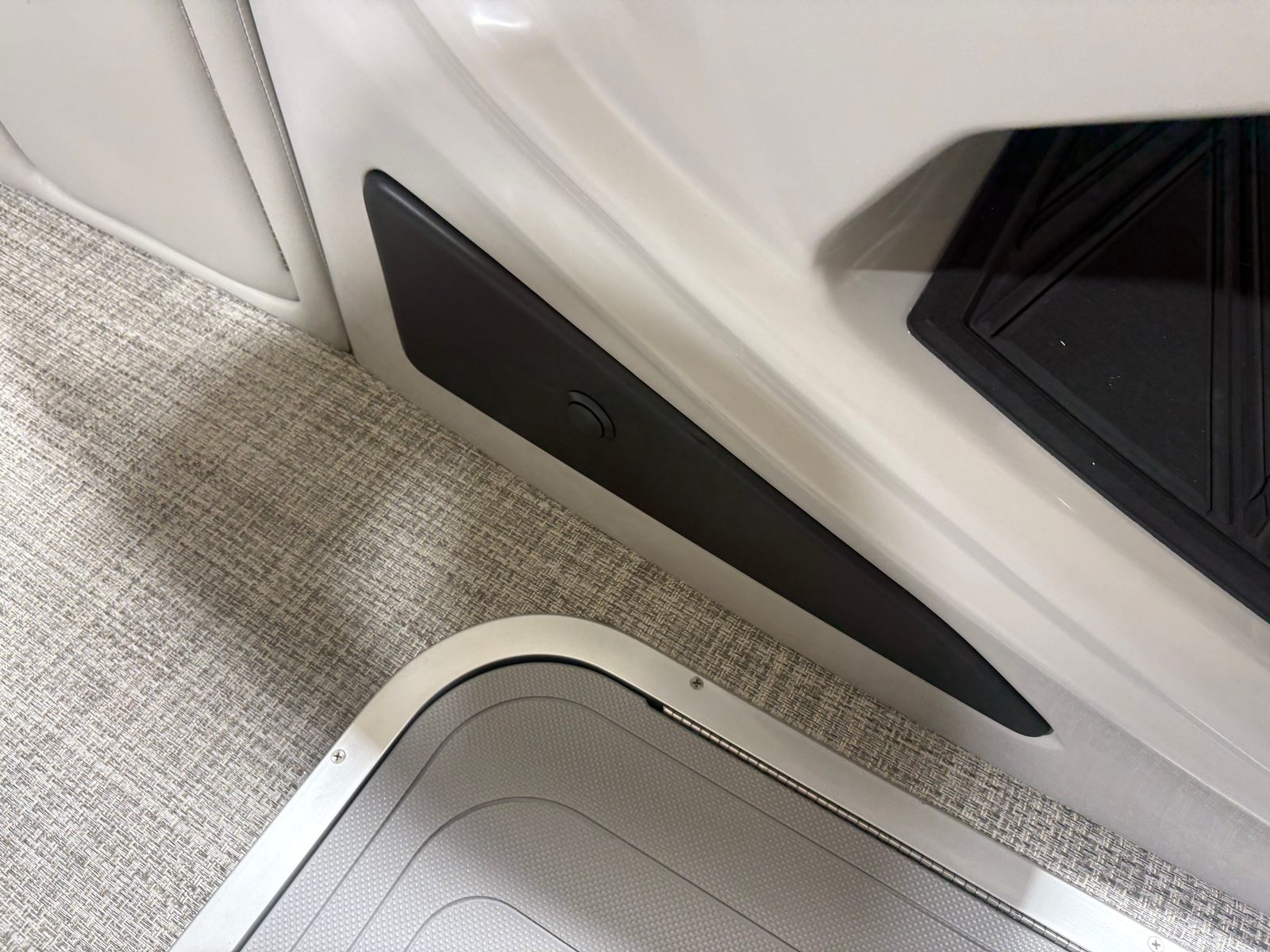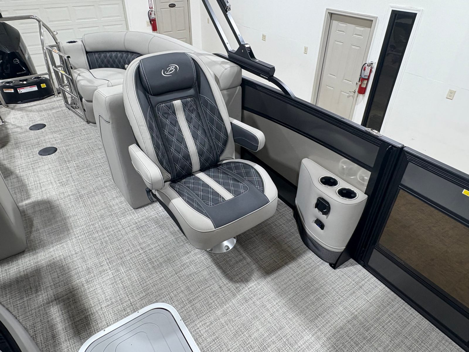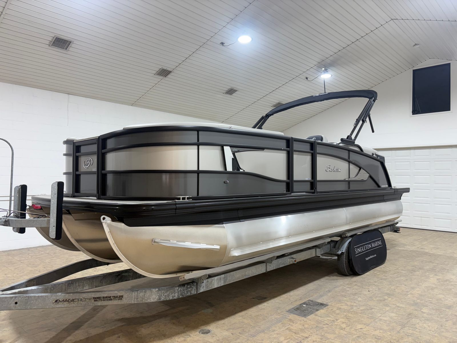 The 2026 Barletta Lusso L23QCSS is a brand-new pontoon boat that stretches an impressive 25.5 feet in length, offering ample space for relaxation, entertainment, and fun. With its sleek lines and contemporary design, this pontoon boat commands attention at every dock and on every lake. The Gray Moonstone sweep color, accented by a touch of Champagne, gives the Lusso L23QCSS a modern yet timeless appeal, while the Lusso Blackout Package adds a bold, sophisticated edge. The Marquesan Gray with Onyx furniture and Amore Gray flooring create a welcoming and stylish environment, making every moment on board feel like a luxury getaway.