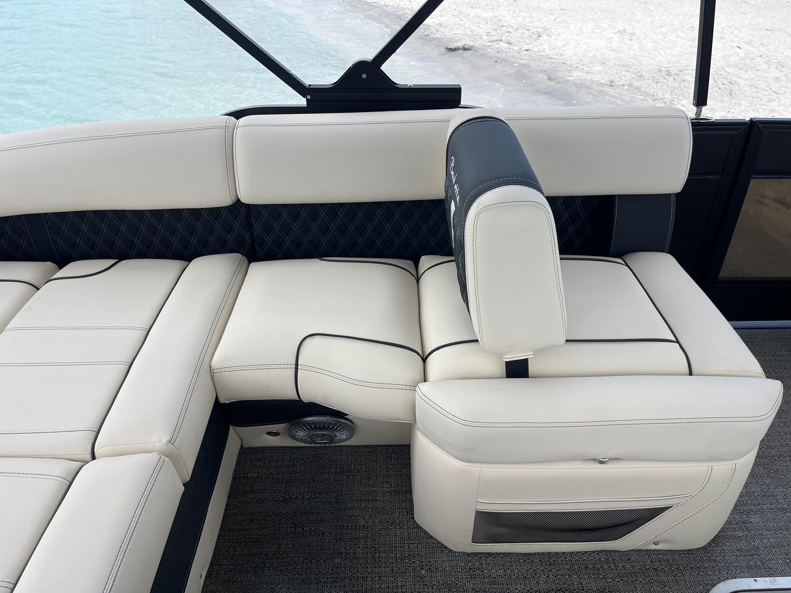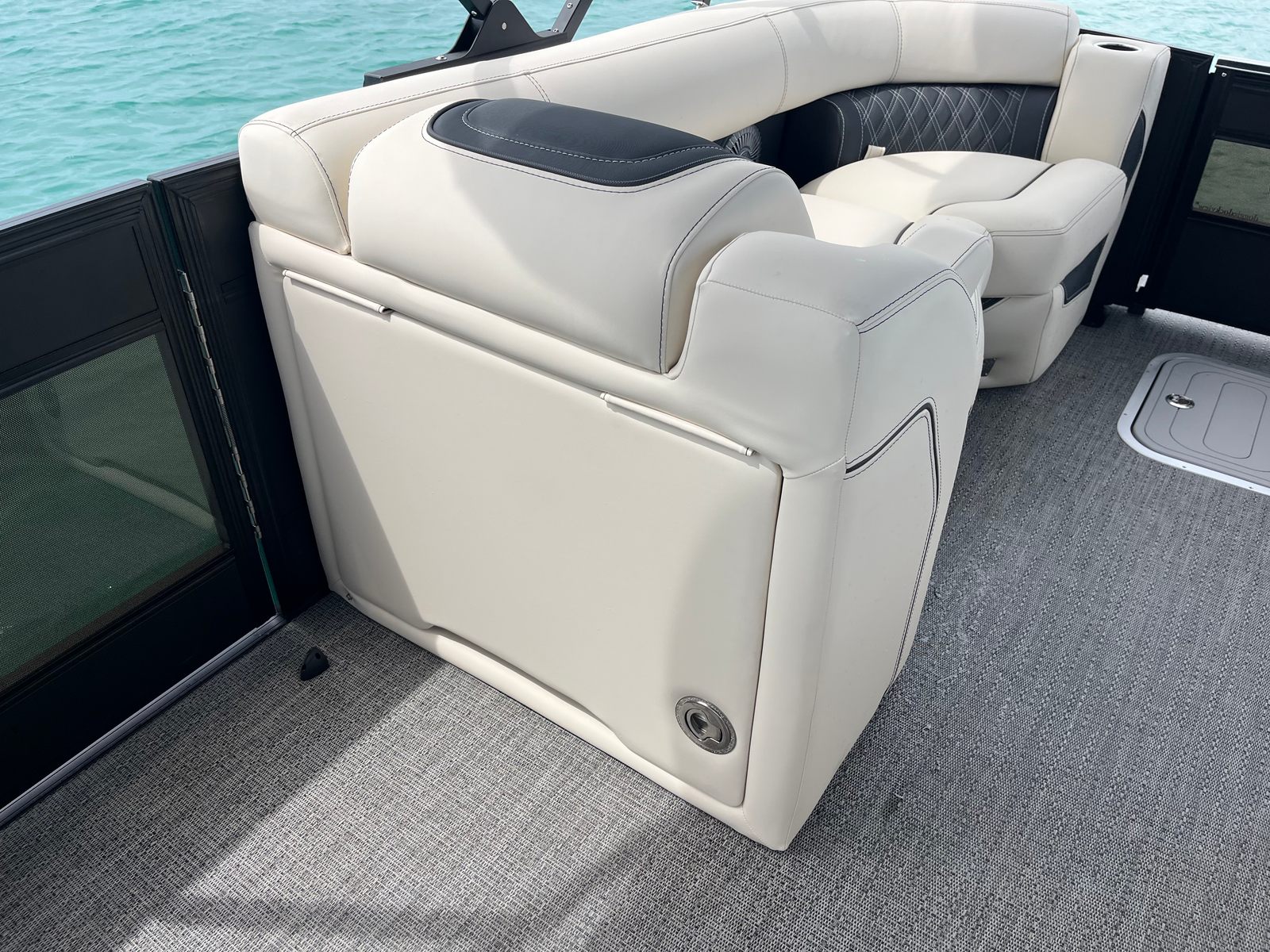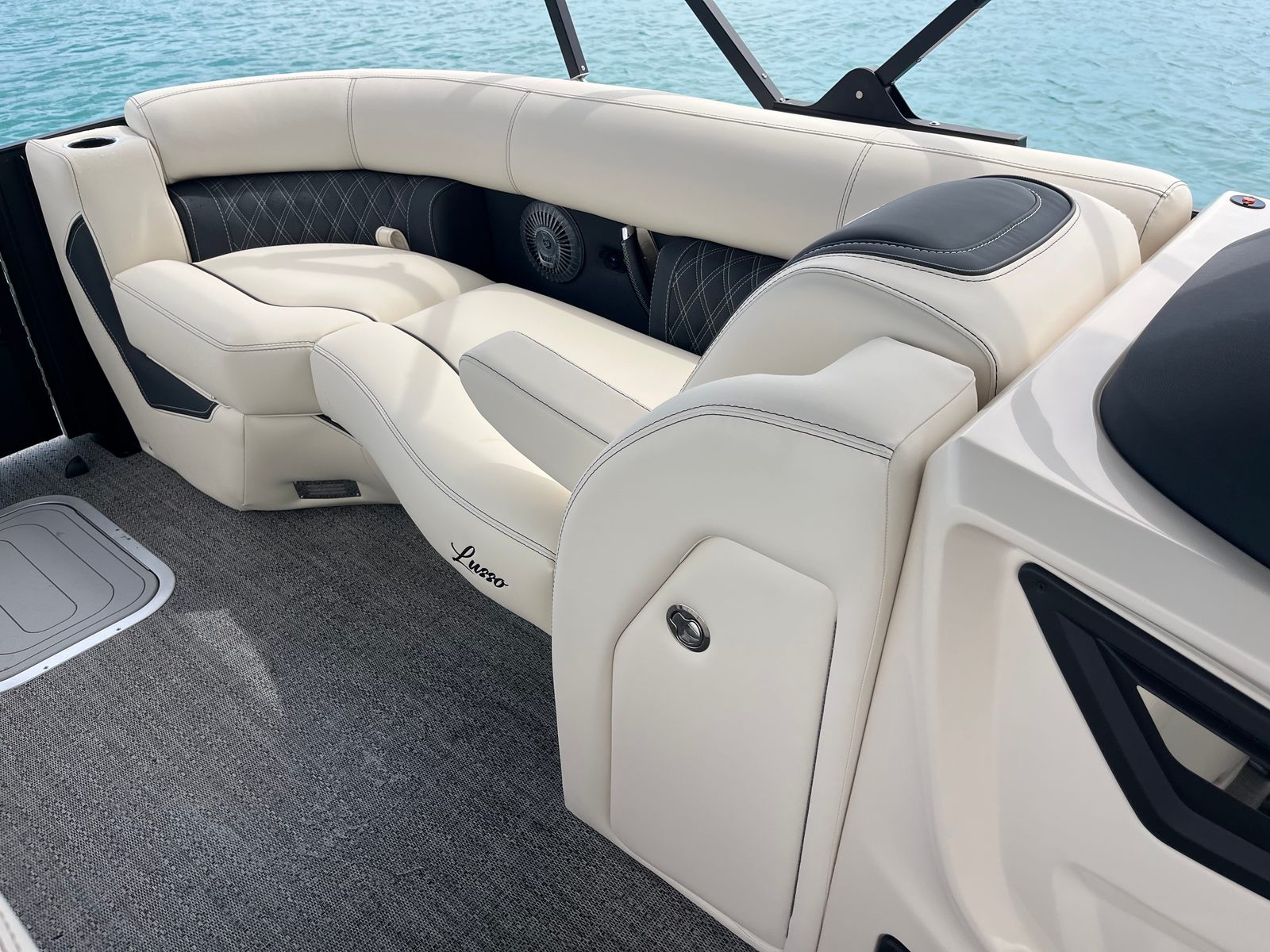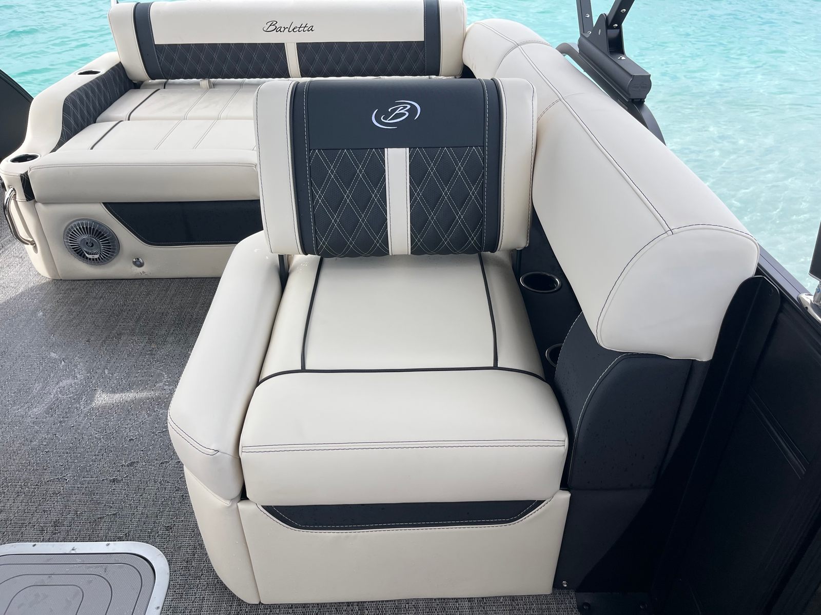 The Barletta Lusso L23U is packed with features that elevate your boating experience to new heights. Its spacious deck layout provides plenty of seating options, perfect for socializing, sunbathing, or enjoying a meal with loved ones. The high-quality upholstery and ergonomic design ensure maximum comfort throughout your journey. Innovative storage solutions are integrated throughout the boat, making it easy to stow away gear, water toys, and personal items without sacrificing space or style.Advanced technology is seamlessly woven into the Lusso L23U’s design, offering intuitive controls and modern conveniences that enhance safety and enjoyment. The pontoon’s sturdy construction and premium materials guarantee longevity and durability, so you can make memories for years to come. Every aspect of this Barletta boat for sale is engineered to provide a superior on-water experience, from its smooth ride to its luxurious finishes.