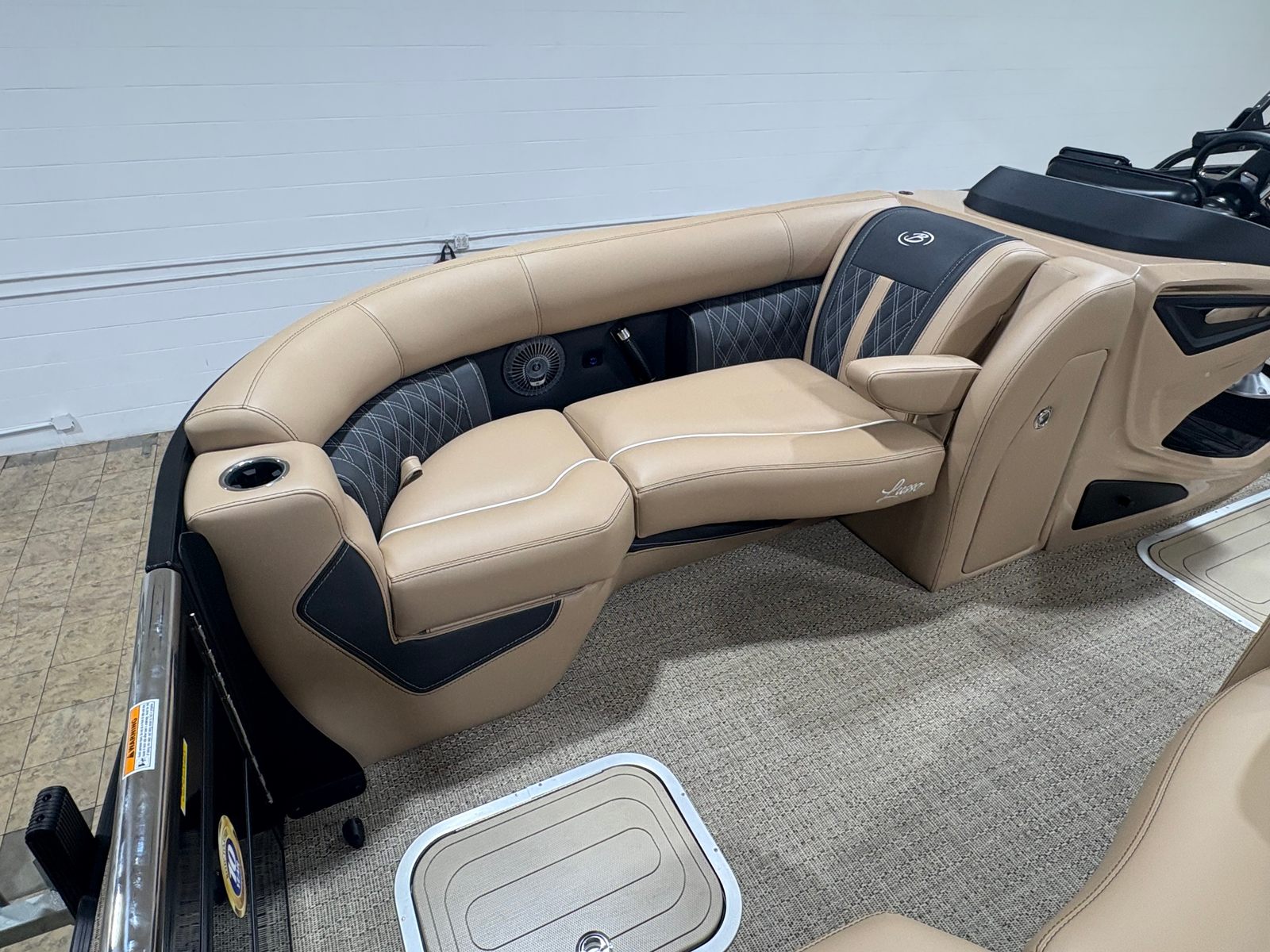 The Barletta Lusso L23U is packed with premium features that set it apart from other pontoon boats for sale. The Blackout Package Lusso railskin delivers a bold, contemporary aesthetic, while the Metal Jacket Protectant shields the exterior from the elements, keeping your pontoon looking pristine season after season. The Carmella Tan with Onyx furniture offers plush seating and a luxurious feel, complemented by the Amore Tan flooring for added comfort and style. Digital gauges provide clear, accurate information at a glance, allowing you to monitor speed, engine performance, and other vital stats with ease.Lighting is another standout feature, with white underdeck and underwater exterior lighting creating a stunning ambiance for evening cruises or dockside gatherings. The Mercury Digital DTS Pre-Rig ensures compatibility and optimal performance with VERADO engines, while the Vessel Link system keeps you connected and informed. Hydraulic and power assist steering, combined with the rigged engine and stainless steel prop, make driving the Lusso L23U a pleasure, whether you’re cruising at sunset or heading out for a day of adventure.