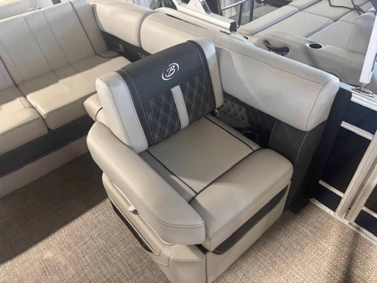 The 2025 Barletta Lusso L23U is a 25.5-foot pontoon that exudes sophistication and style. Its spacious layout and thoughtful design make it perfect for those who value both comfort and functionality. The Lusso L23U’s sleek profile is enhanced by its Black Diamond accent color and Blue Sapphire sweep, making it a true head-turner at any marina or on open water. As a new pontoon boat, it offers the latest advancements in marine technology and craftsmanship, ensuring a smooth and enjoyable ride every time you set out.