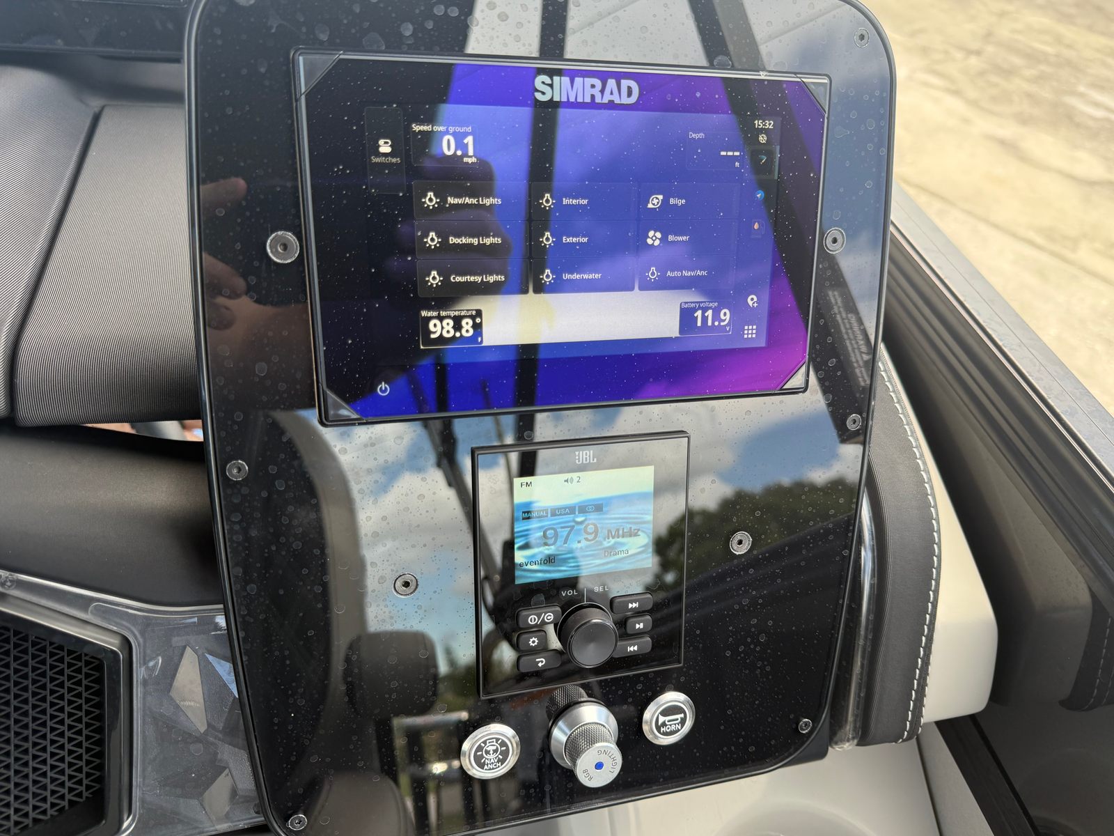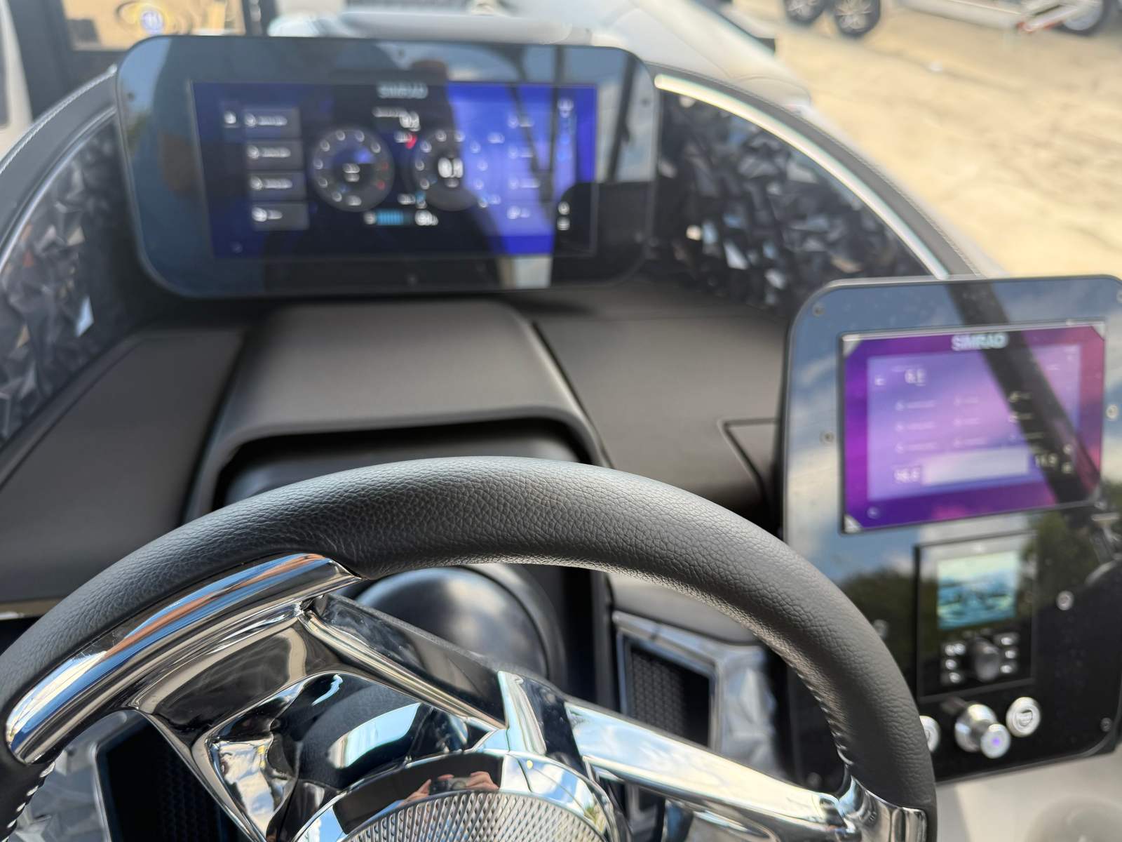 Powering this exceptional pontoon is a single Mercury (D) 300L Verado V8 engine, delivering a robust 300 horsepower for exhilarating acceleration and impressive cruising speeds. The Mercury Digital DTS Pre-Rig for VERADO engines with Vessel Link ensures seamless integration and precise control, while hydraulic and power assist steering make handling effortless, even in challenging conditions. With digital gauges providing real-time performance data, you’ll always be in command, whether you’re gliding across calm waters or navigating busy waterways. The rig engine features a stainless steel prop, optimizing efficiency and durability for long-lasting enjoyment.