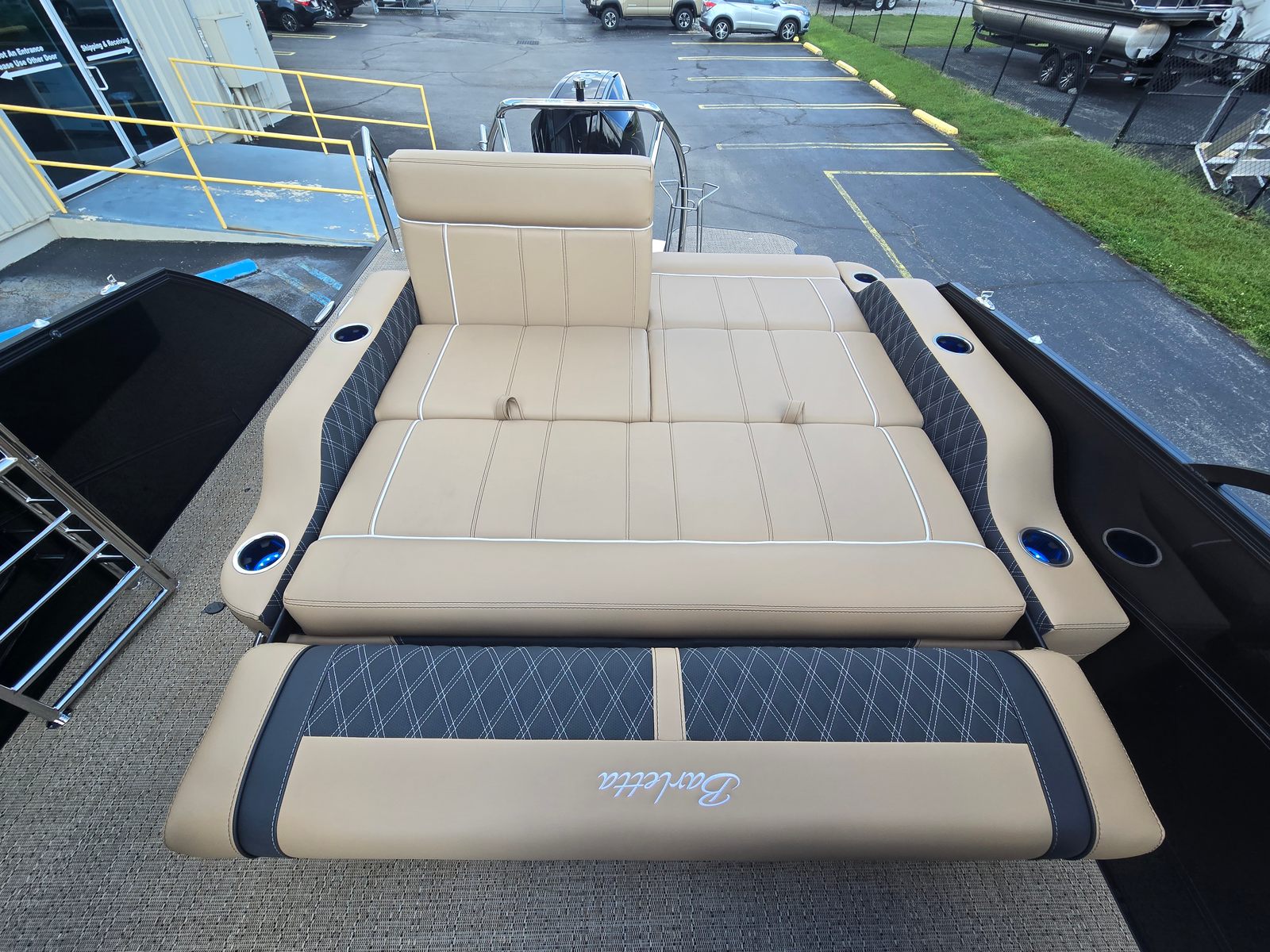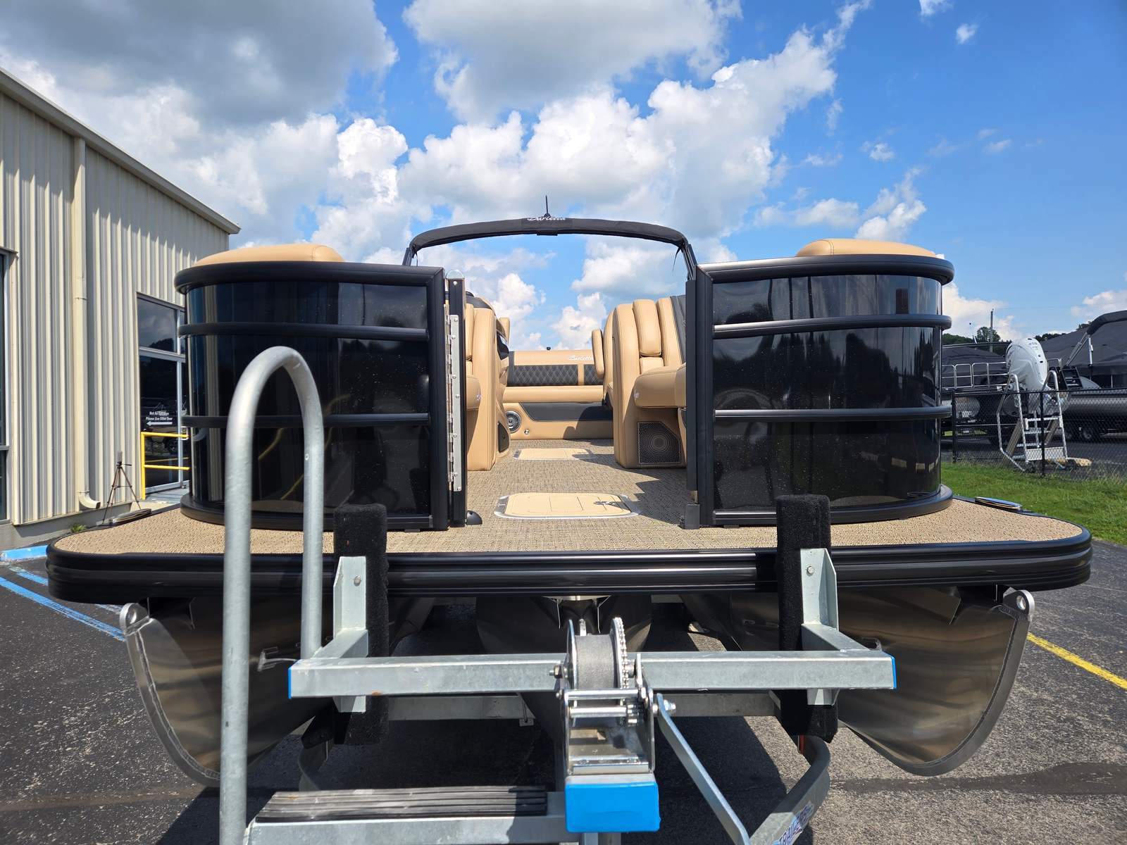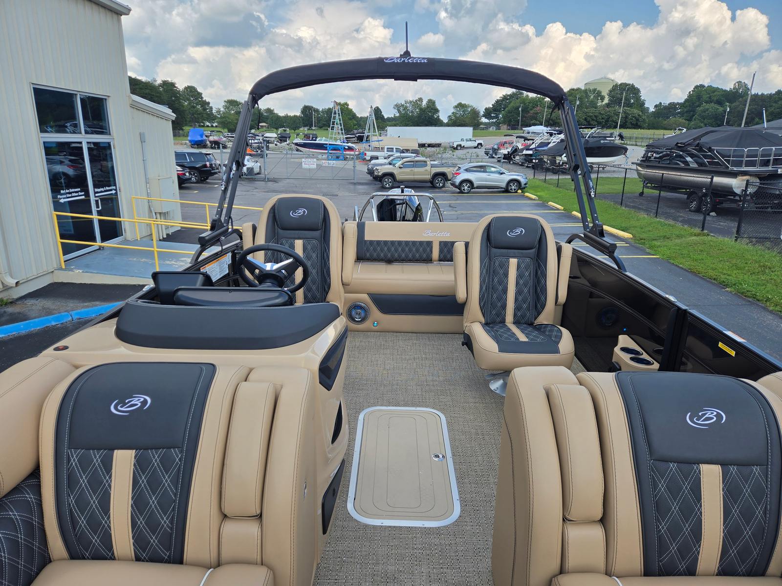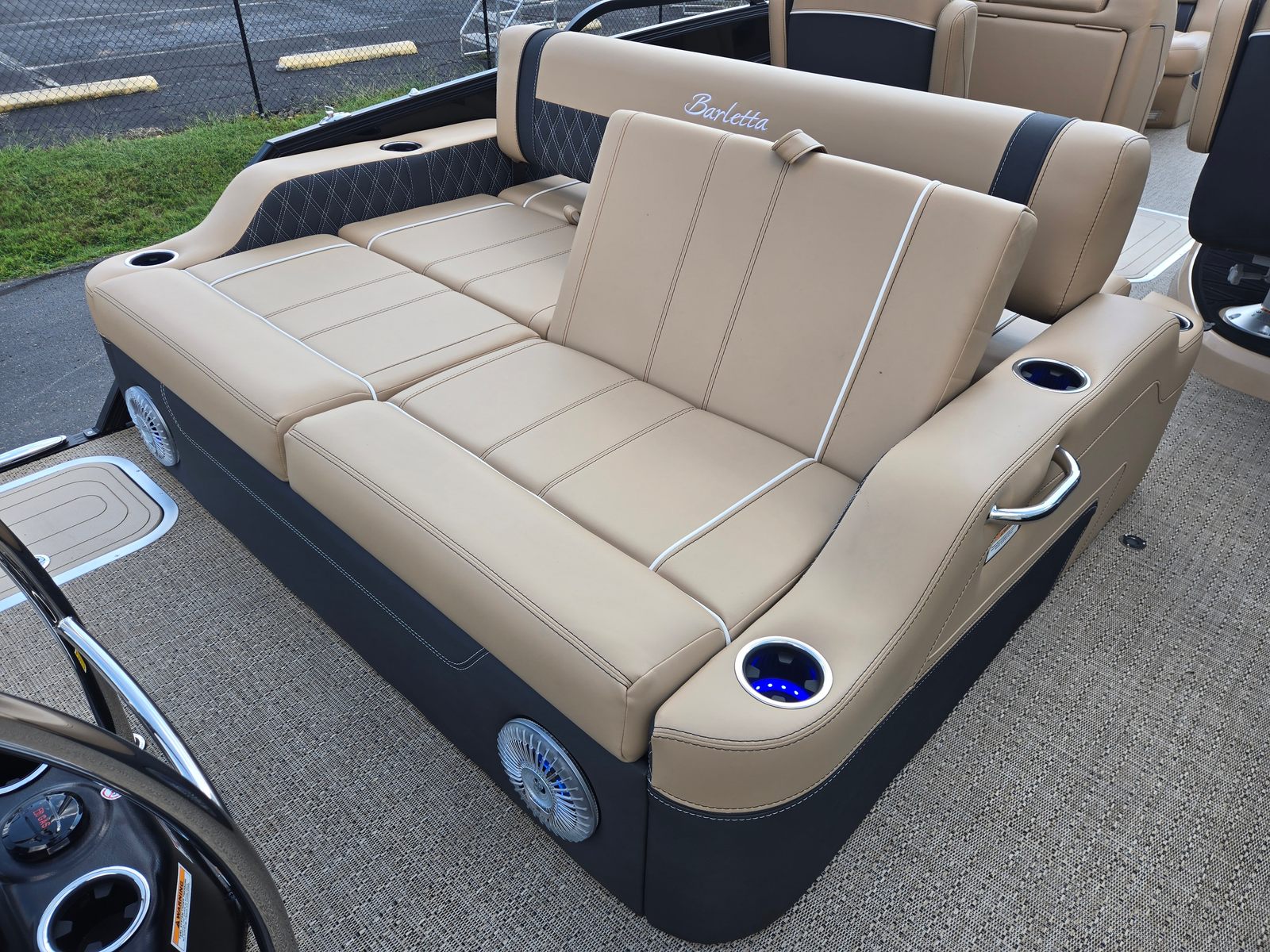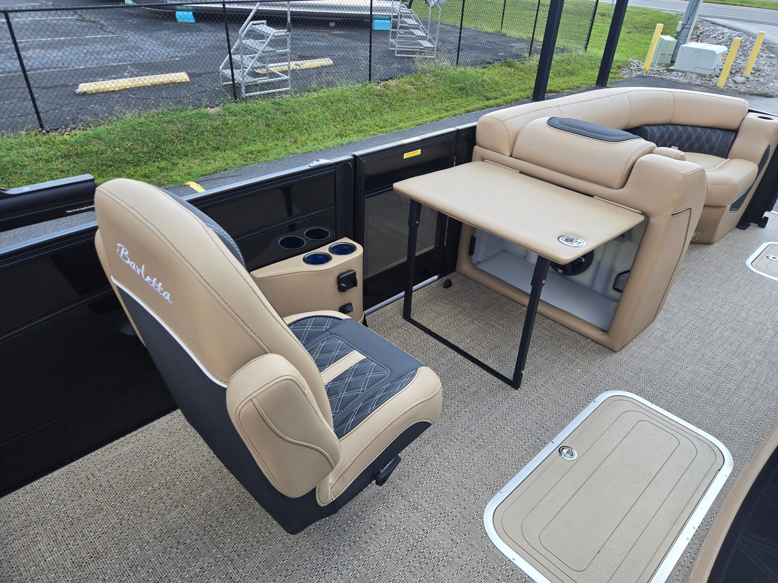 The 2026 Barletta Lusso L23UC stands out with its impressive 25.5-foot length, offering ample space for family, friends, and all your favorite water activities. As a brand-new pontoon boat, it showcases Barletta’s commitment to quality craftsmanship and attention to detail. The Lusso L23UC is designed to turn heads with its sleek Sweep Color and Accent Color in Black Diamond, complemented by the exclusive Blackout Package Lusso Railskin. The Carmella Tan with Onyx furniture and Amore Tan flooring create a warm, inviting atmosphere that exudes both comfort and style. This Barletta boat for sale is the perfect blend of elegance and functionality, making it a standout choice for those who demand the best.
