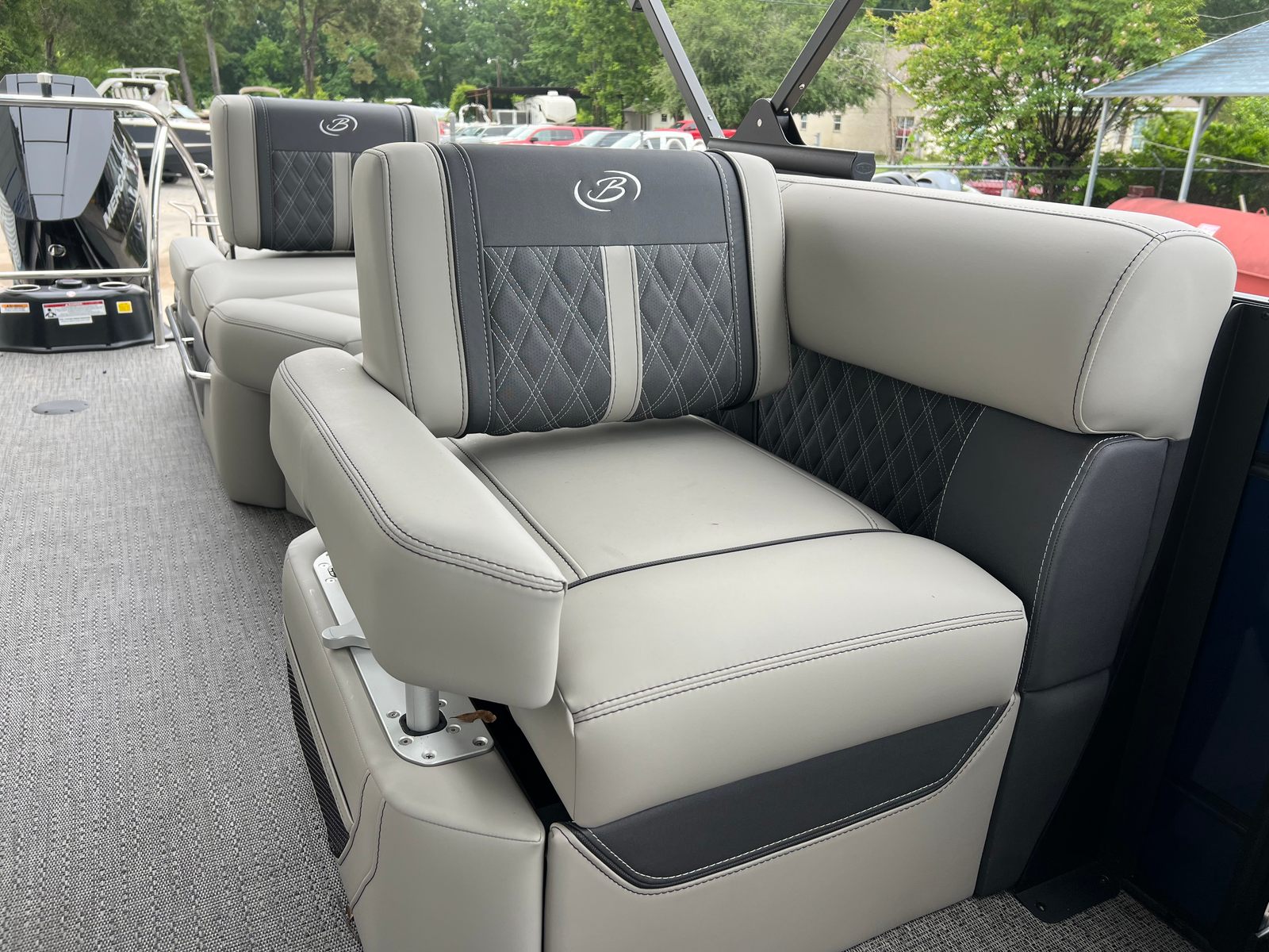 The Barletta Lusso L25M shines in a variety of scenarios, making it the perfect choice for families, couples, and groups of friends. Imagine hosting a lively party on the water, with music playing and guests relaxing in plush seats under the shade of the double bimini. Picture a peaceful morning fishing trip, with plenty of room for gear and easy access to your favorite spots. Envision a romantic sunset cruise, surrounded by the elegant colors and finishes of the Lusso L25M as you glide across the lake.This pontoon boat is equally suited for luxury getaways, offering the comfort and amenities needed for extended trips. The spacious deck and high-end furniture create a resort-like atmosphere, while the powerful engine ensures you can reach your destination quickly and safely. Whether you’re seeking adventure or relaxation, the Lusso L25M delivers an unforgettable experience every time you set out on the water.