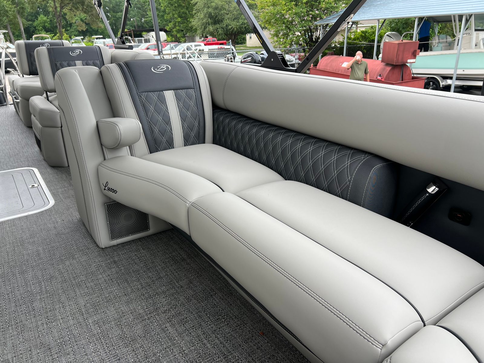 Beyond its luxurious features, the Lusso L25M is designed with practicality in mind. The generous length provides ample storage space for gear, water toys, and personal items, keeping the deck clutter-free and organized. The sturdy construction and protective Metal Jacket exterior make docking and maintenance straightforward, while the efficient engine helps keep fuel costs manageable. The intuitive layout and easy-to-use controls ensure that both seasoned boaters and newcomers can operate the Lusso L25M with confidence.Whether you’re planning a weekend getaway, a day of fishing, or a leisurely cruise, this pontoon boat adapts to your needs. The flexible seating arrangements and spacious deck make it easy to switch between activities, while the double bimini system offers protection from the elements when you need it most. The Lusso L25M’s combination of style, comfort, and performance makes it a smart investment for anyone seeking a versatile and enjoyable boating experience.