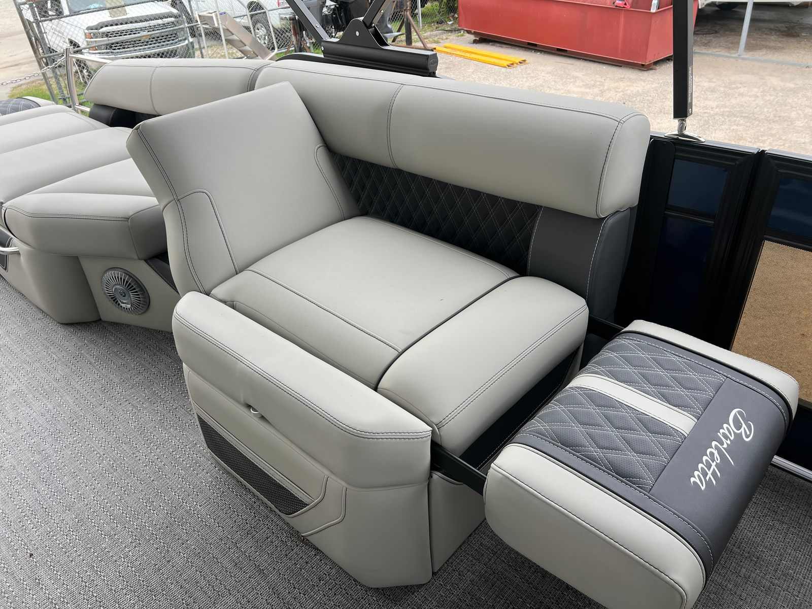 The Barletta Lusso L25M is a 2025 model pontoon boat that measures an impressive 27.5 feet in length, providing ample space for relaxation, entertainment, and fun. As a new vessel, it showcases the latest advancements in pontoon design and technology, making it a prime choice for buyers who want a modern, reliable, and stylish boat. The Lusso L25M’s sleek profile and sophisticated color palette, featuring a Black Diamond sweep and accent, ensure that you’ll turn heads wherever you go. This Barletta boat for sale is engineered for both comfort and versatility, making it ideal for a wide range of recreational activities.