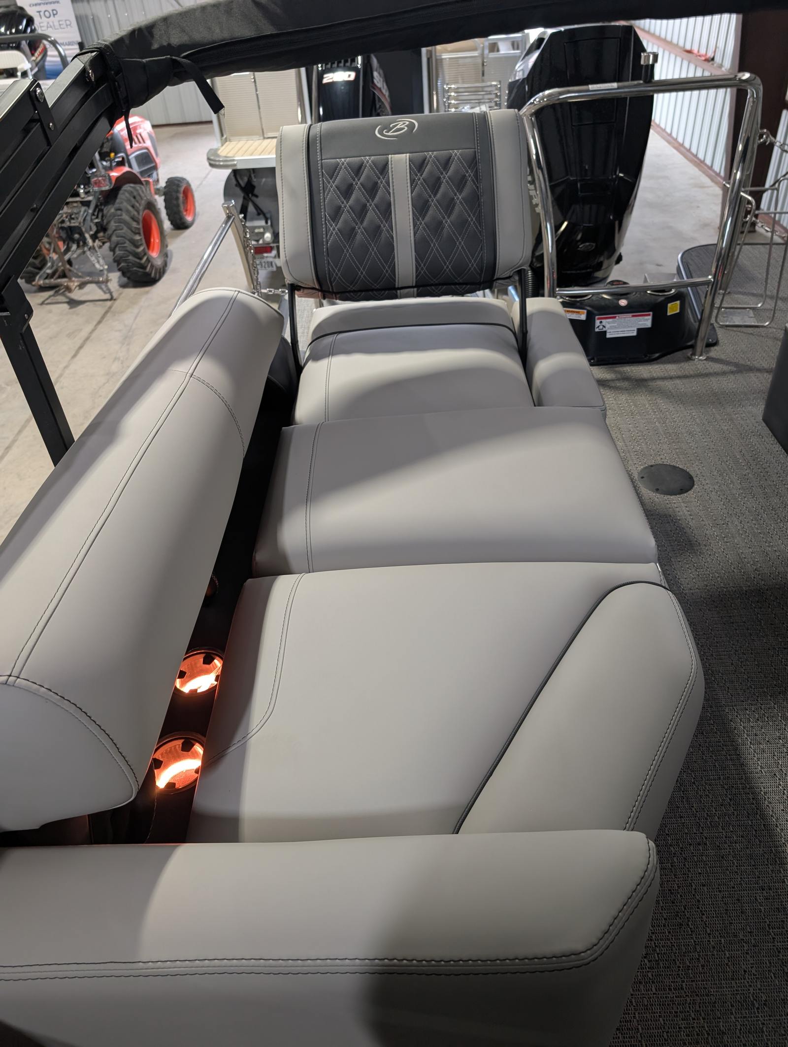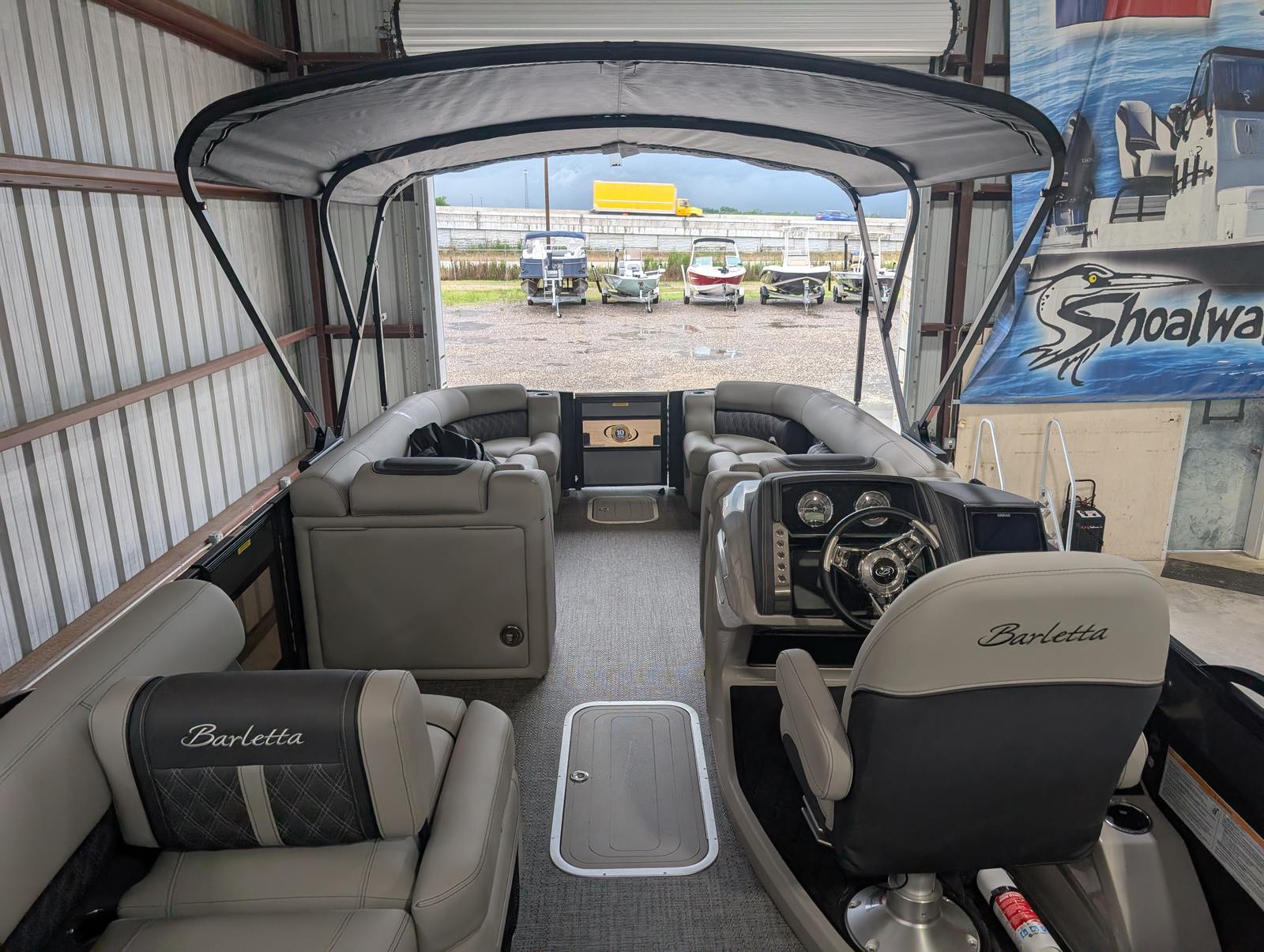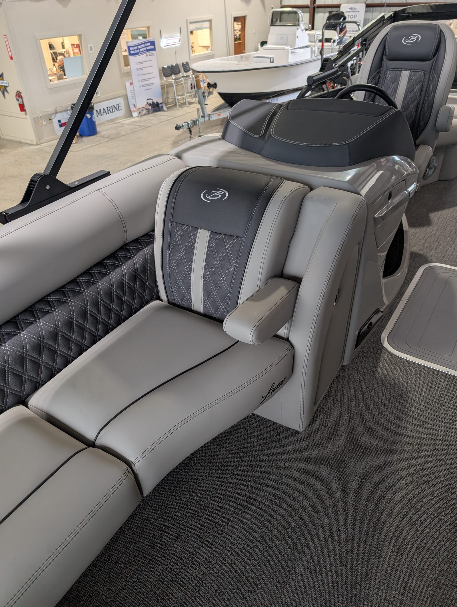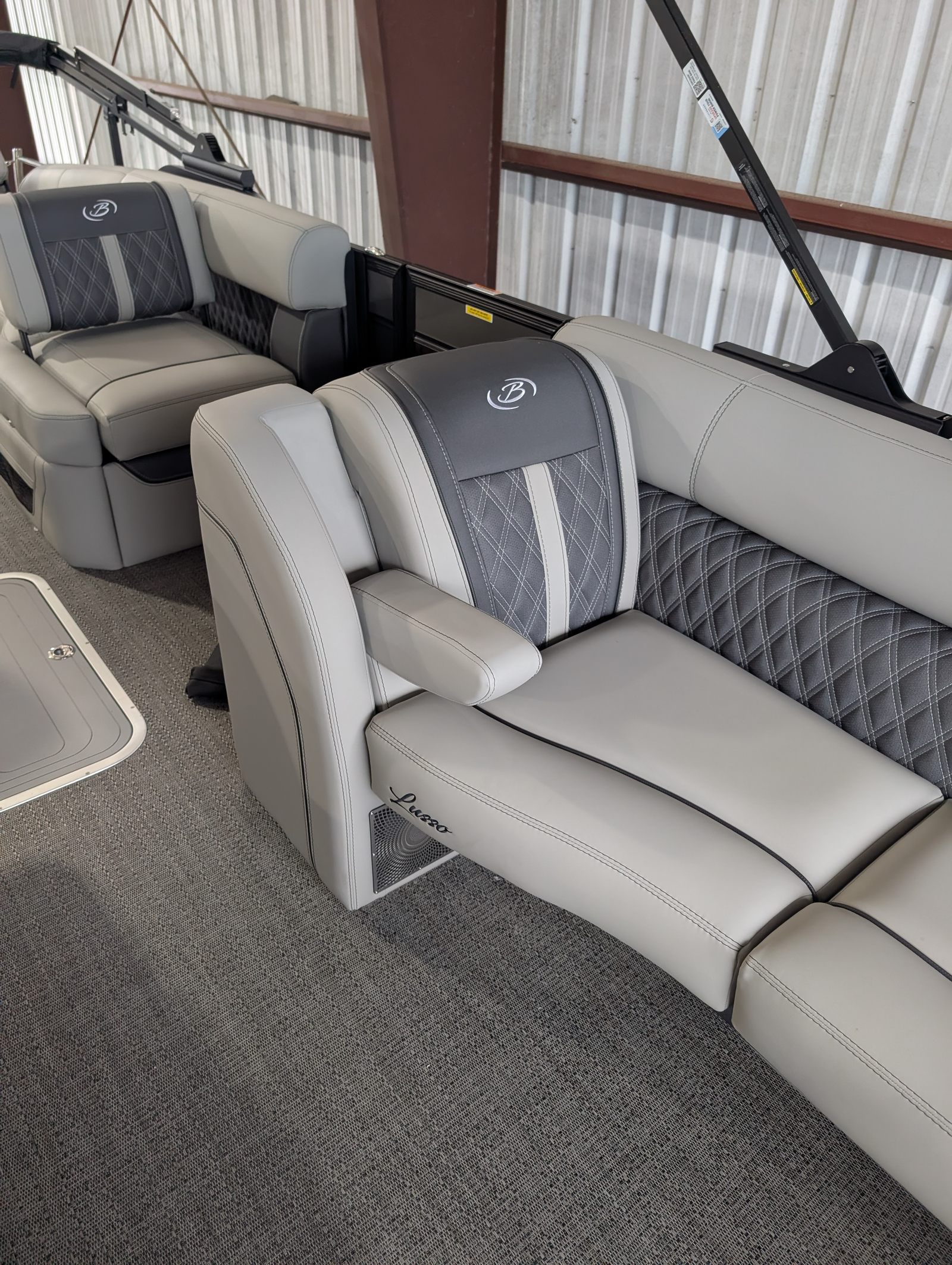 The 2025 Barletta Lusso L25M is a pontoon boat for sale that combines luxury, performance, and versatility in one exceptional package. With its powerful Mercury V10 Verado engine, stylish Amore Gray flooring, adjustable captain’s chair, dramatic exterior lighting, and sophisticated interior accents, this new pontoon is designed to elevate every moment on the water.Whether you’re seeking a Barletta boat for sale for family adventures, entertaining friends, or enjoying solo escapes, the Lusso L25M delivers unmatched comfort, style, and reliability. Don’t miss your chance to experience the ultimate in pontoon boating – contact your dealer today to learn more about the Barletta Lusso L25M and start planning your next aquatic adventure.