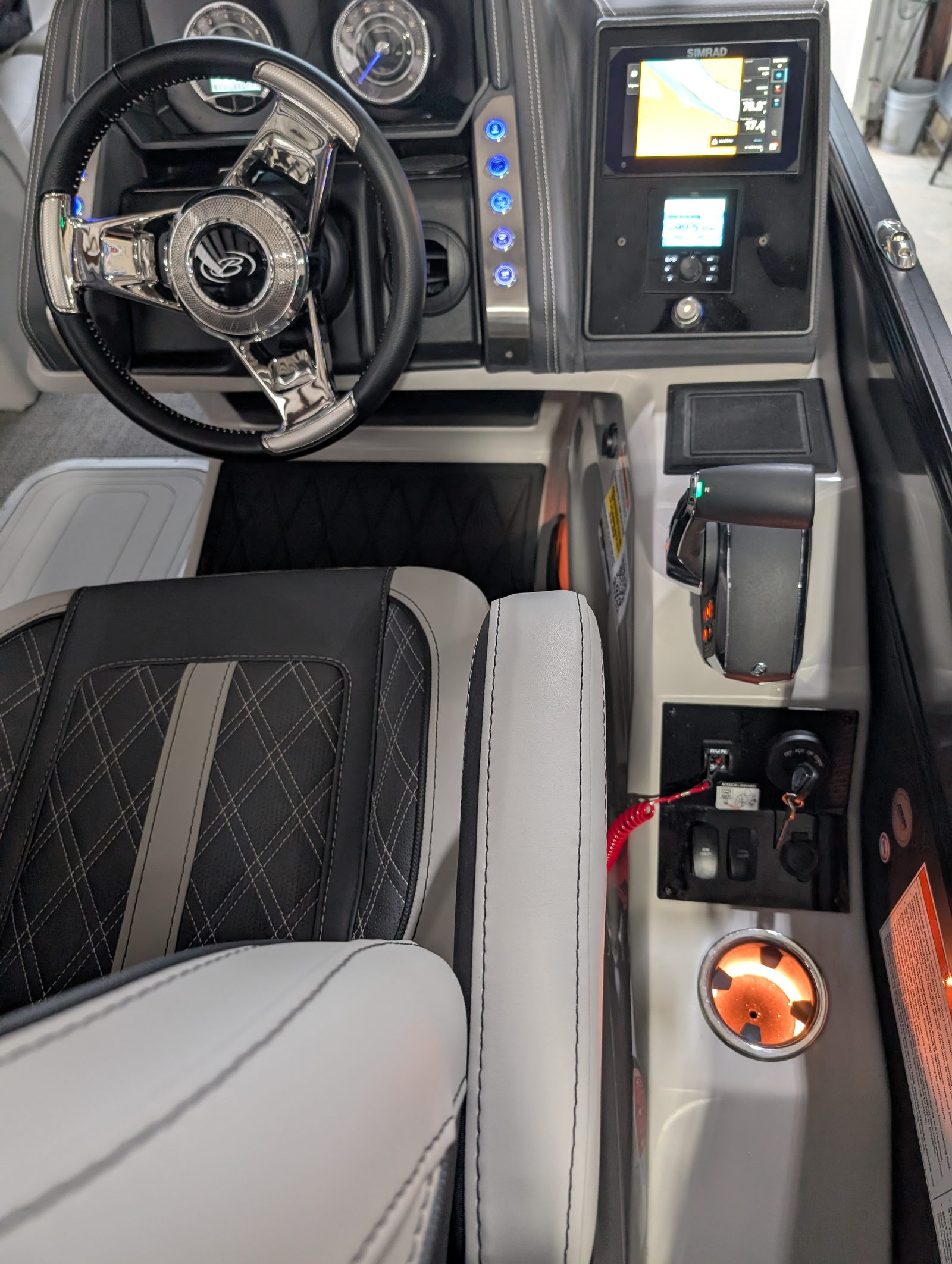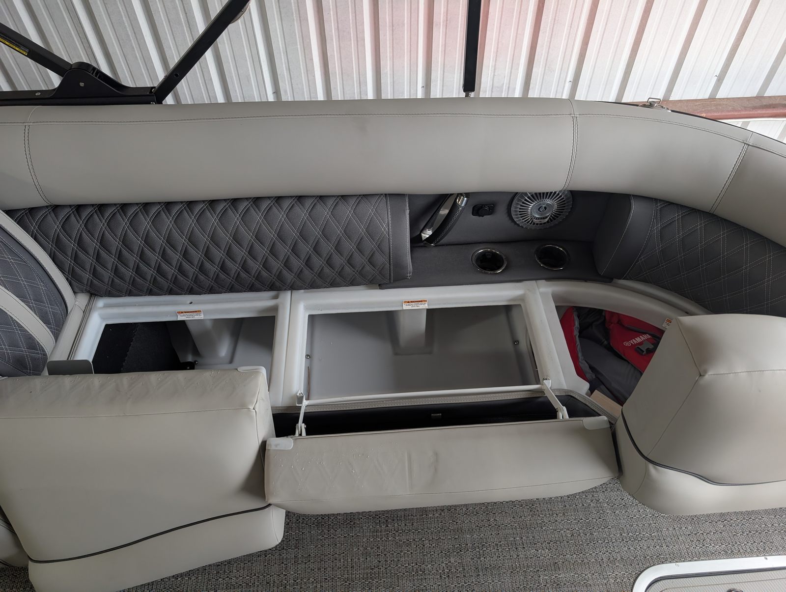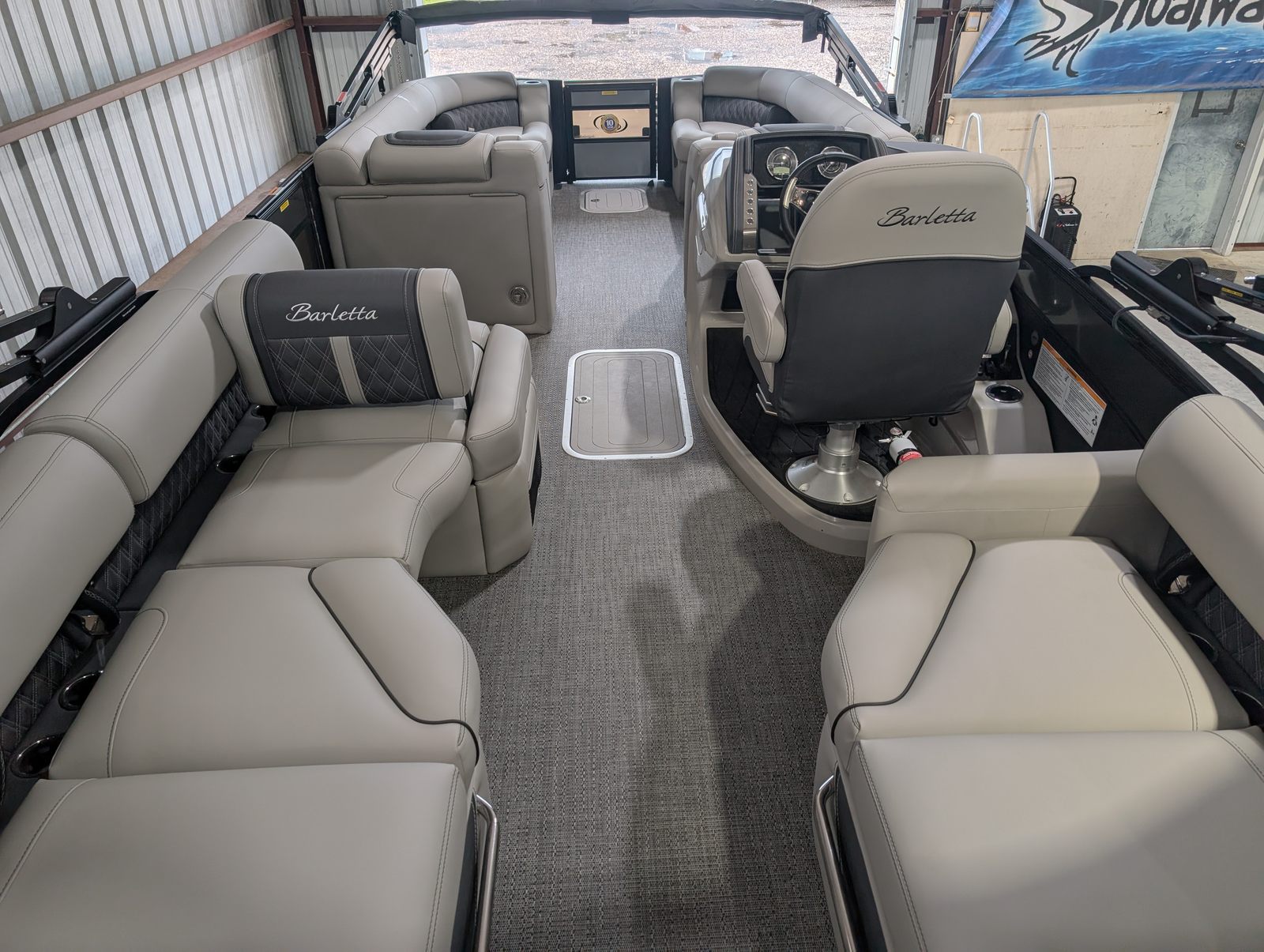 Owning the Barletta Lusso L25M means embracing a lifestyle of fun, relaxation, and adventure. The spacious deck layout provides plenty of room for family and friends to spread out, socialize, and soak up the sun. The high-quality flooring and plush furniture create a welcoming environment for lounging, dining, or celebrating special occasions.The adjustable captain’s chair ensures that every journey is comfortable, whether you’re navigating to a favorite fishing spot or cruising along the shoreline. The table and Yeti-ready cupholders make it easy to enjoy snacks and drinks while you’re anchored or underway, turning every outing into a memorable event.With exterior lighting illuminating the deck and underwater areas, you can extend your boating adventures into the evening, enjoying the tranquil ambiance of moonlit waters. The Lusso L25M’s stylish design and premium finishes make it a standout at any dock or marina, reflecting your taste for quality and sophistication.