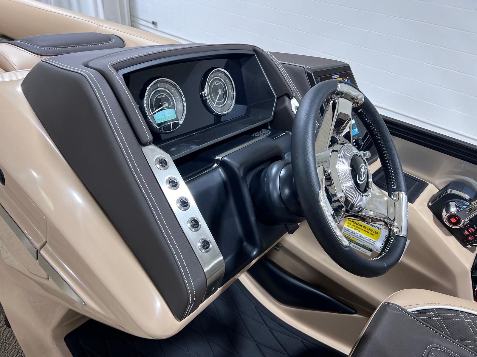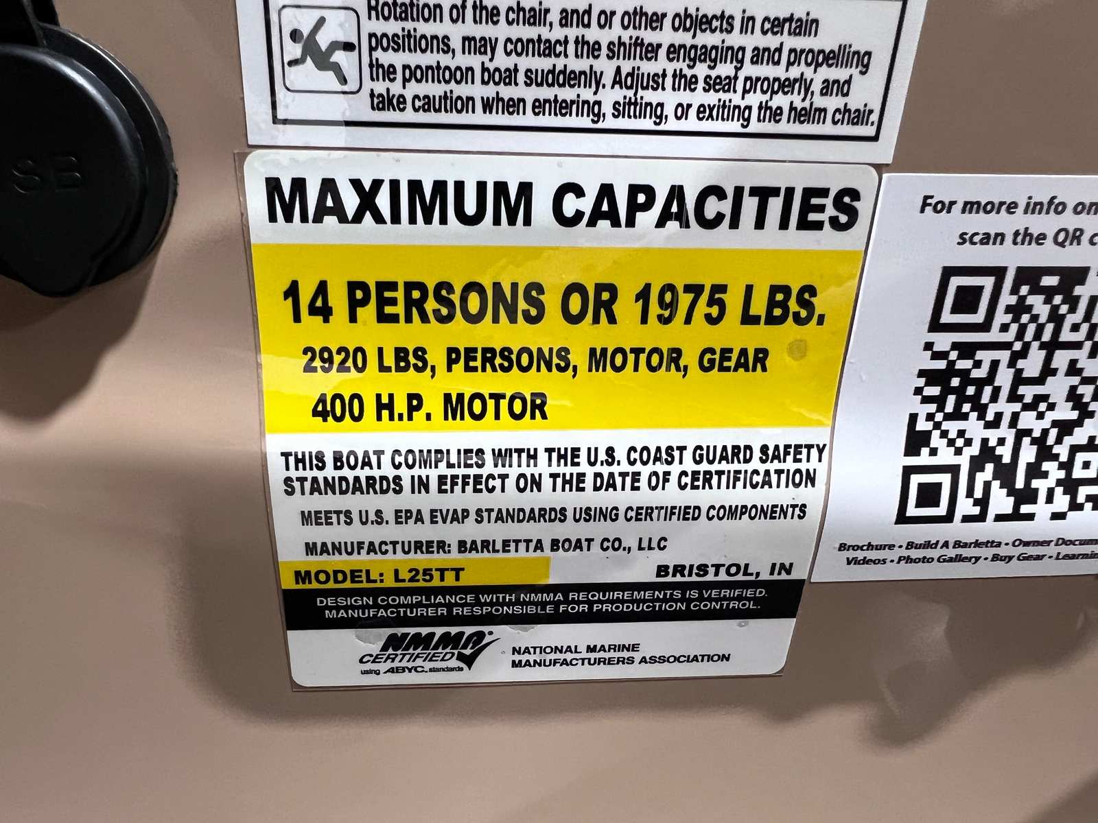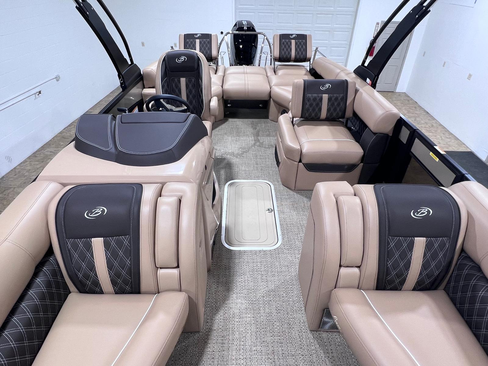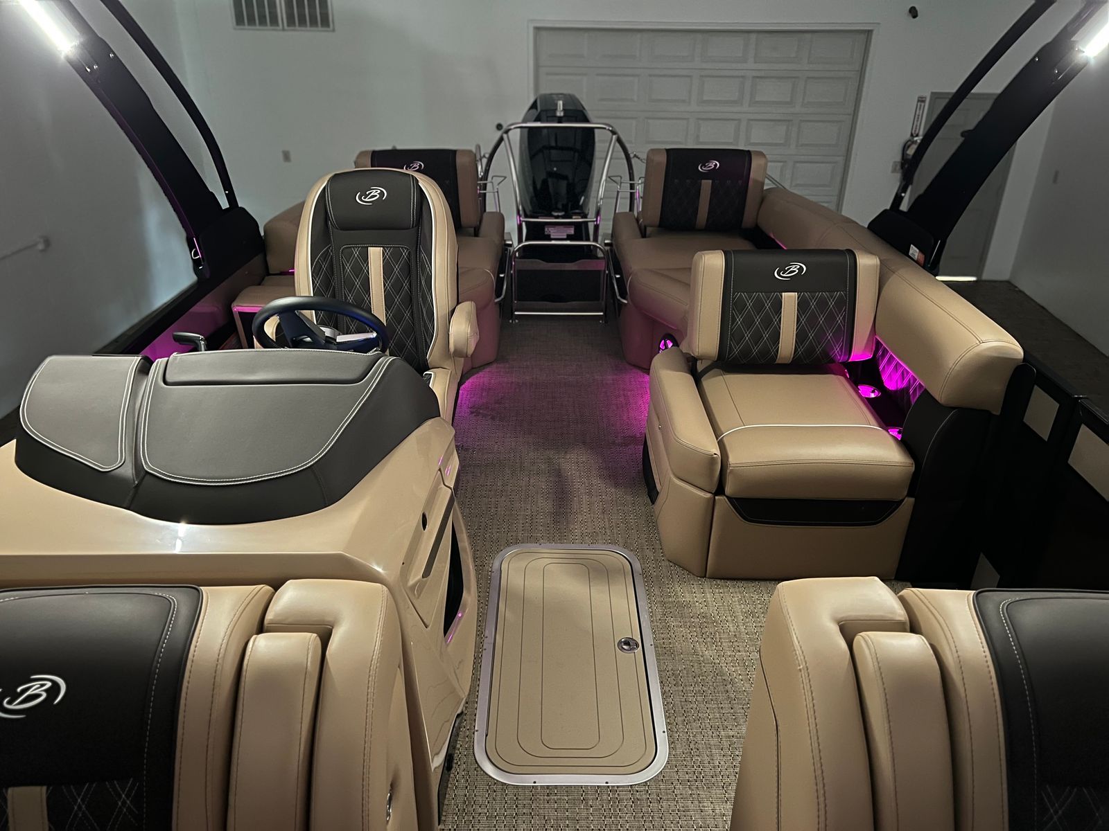 Owning the Barletta Lusso L25M means embracing a lifestyle of luxury, comfort, and endless fun on the water. The spacious layout provides plenty of room for family and friends, making it perfect for social gatherings, celebrations, or simply unwinding in style. The plush Carmella Tan with Bison furniture invites you to relax and enjoy the ride, while the Amore Tan flooring adds a touch of elegance to every step.The powerful Mercury V10 Verado engine ensures that every outing is smooth, efficient, and exhilarating. Whether you are cruising along the shoreline, exploring new coves, or towing water toys, this pontoon boat delivers the performance you need for any adventure. The advanced rigging and digital pre-rig systems make operation straightforward and hassle-free, allowing you to focus on enjoying your time on the water.