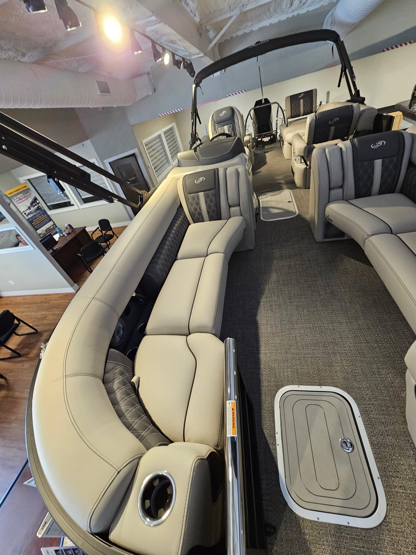 Owning the Barletta Lusso L25M means embracing a lifestyle of fun, relaxation, and connection. The spacious deck layout encourages social gatherings, making it easy to host family celebrations, sunset cruises, or impromptu get-togethers with friends. The plush seating and thoughtfully designed furniture invite you to unwind, while the advanced engine technology ensures every outing is as smooth as it is exciting.This pontoon boat is perfect for those who value both performance and comfort. The powerful Mercury 400L V10 Verado engine provides the speed and agility needed for water sports or quick trips across the lake, while the luxurious amenities create a resort-like atmosphere on board. With its eye-catching design and premium finishes, the Lusso L25M is sure to be the centerpiece of your boating adventures.