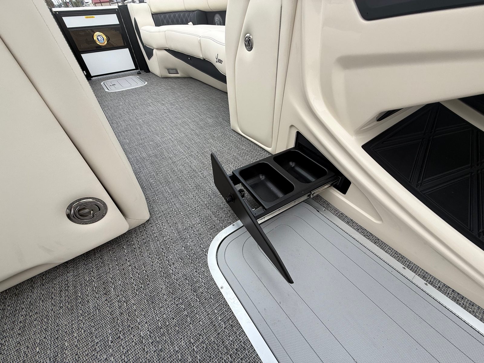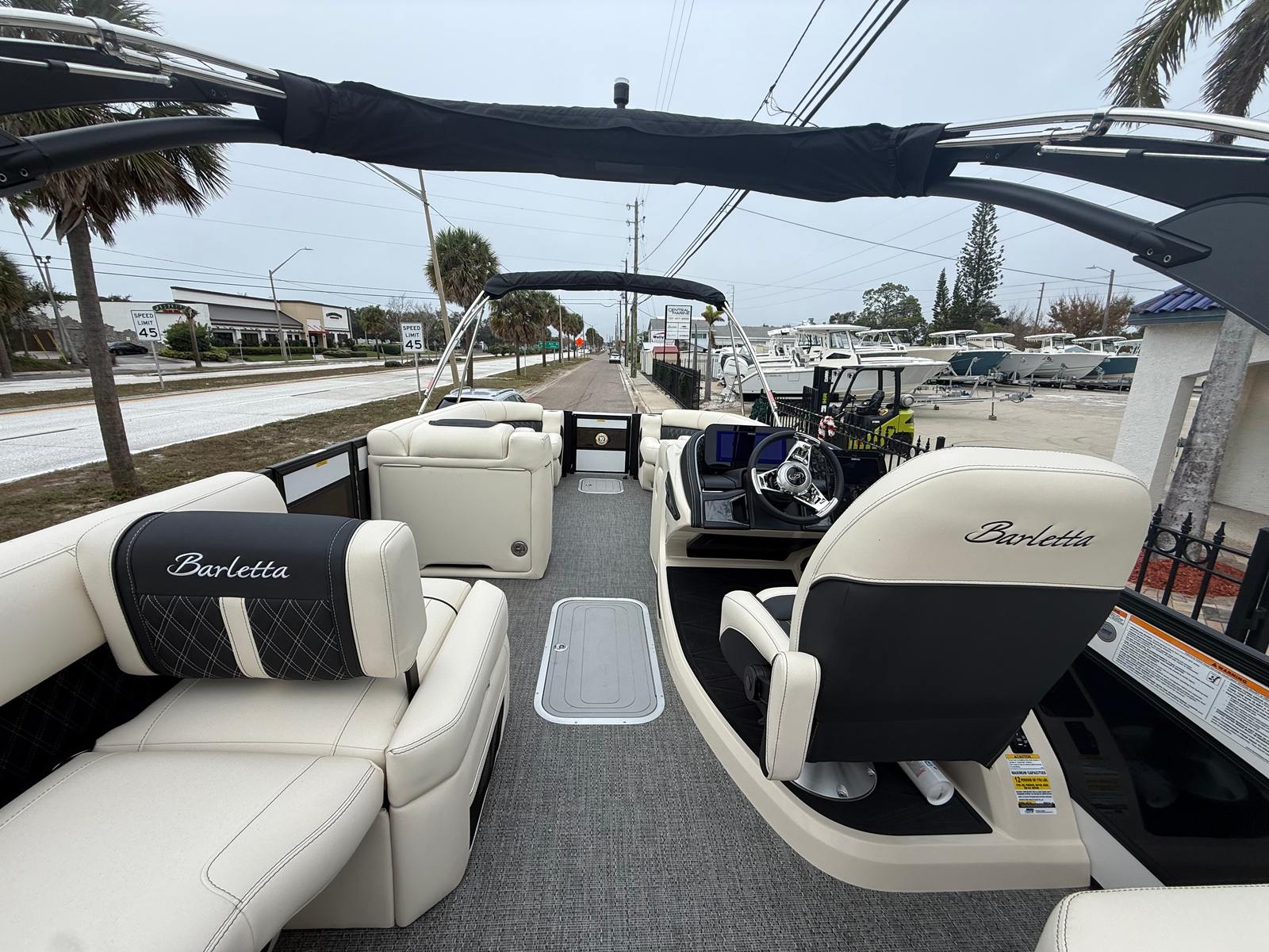 Step aboard and immerse yourself in the luxurious features that set the Barletta Lusso L25MA apart. The exterior boasts a striking Sweep Color in Winter White, complemented by the sophisticated Accent Color: Black Diamond. The Blackout Package Lusso adds a touch of elegance and modernity, ensuring you turn heads wherever you go. Inside, the furniture is upholstered in Linen with Onyx accents, creating a refined and inviting atmosphere. The flooring in Amore Gray is both stylish and practical, providing comfort underfoot and easy maintenance.The Coastal Edition Lusso enhances the boat’s durability and appeal, making it ideal for a variety of environments. The Double Bimini Arch Models offer versatile shade options, allowing you to enjoy sunny days or seek shelter when needed. Every detail is thoughtfully designed to maximize comfort, convenience, and enjoyment.