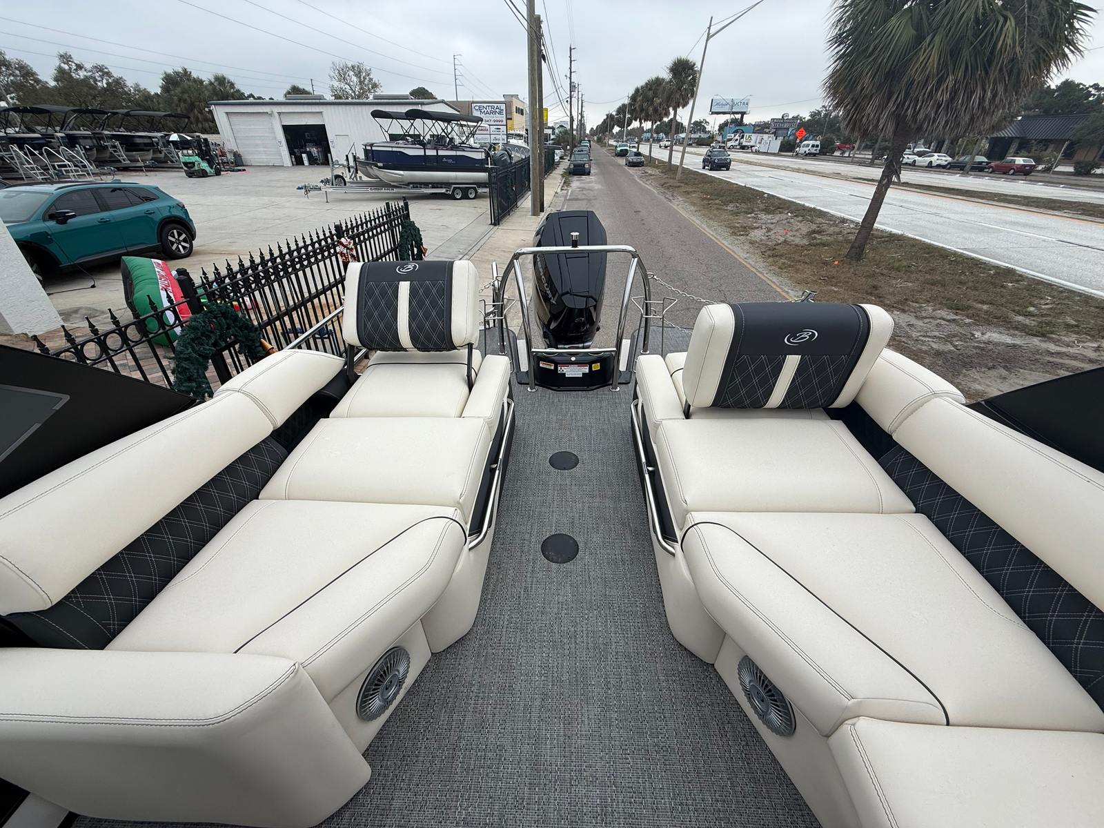 The Barletta Lusso L25MA is designed with practicality in mind, making ownership a breeze. Its generous length offers ample storage space for gear, water toys, and personal items, keeping the deck clutter-free and organized. The intuitive layout simplifies docking and maneuvering, even for those new to boating. Fuel efficiency is enhanced by the advanced Mercury V10 engine, allowing you to spend more time on the water and less at the pump.The durable flooring and high-quality upholstery are easy to clean and maintain, ensuring your boat stays looking its best season after season. The Double Bimini Arch Models provide flexible shade options, so you can adapt to changing weather conditions and keep everyone comfortable. Whether you’re planning a day trip or an extended adventure, this pontoon boat is equipped to handle your needs with ease.