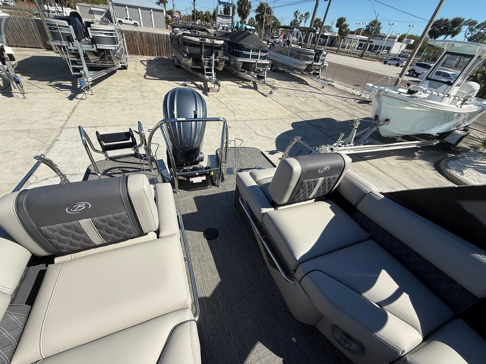 The 2025 Barletta Lusso L25MA is a top-tier pontoon boat for sale that combines luxury, performance, and practicality in one stunning package. With its powerful Yamaha F300XSB engine, integrated electric steering, digital gauges, and a host of premium features—including the Black Diamond and Gray Moonstone color scheme, Blackout Package Lusso, Marquesan Gray furniture, Amore Gray flooring, and Coastal Edition Lusso—this Barletta boat for sale is designed to deliver unforgettable experiences on the water.Whether you are seeking a family-friendly pontoon, a stylish entertainer, or a reliable performer for coastal adventures, the Lusso L25MA is ready to exceed your expectations. Don’t miss the opportunity to own this exceptional pontoon boat—contact your local dealer today to learn more and schedule a viewing. Your next adventure awaits with the Barletta Lusso L25MA!