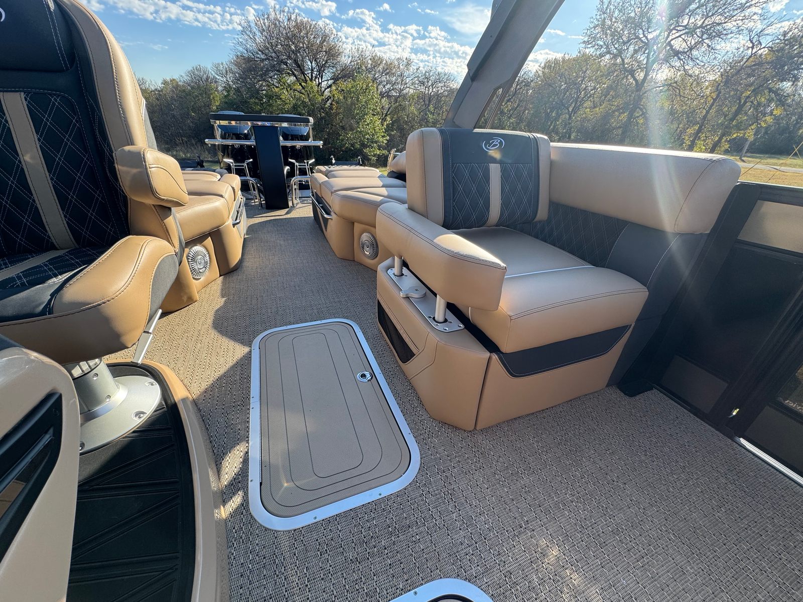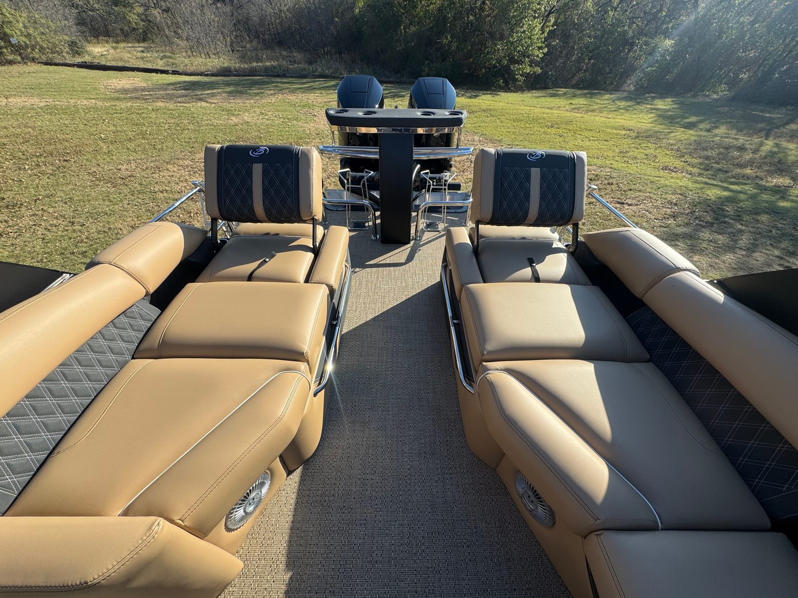 In summary, the 2026 Barletta Lusso L25MAT is a remarkable pontoon boat for sale that combines luxury, performance, and practicality in one stunning package. With its impressive 28.25-foot length, twin Mercury 400L V10 Verado engines delivering 800 horsepower, and a host of premium features—including Gray Moonstone and Black Diamond exterior colors, Carmella Tan with Onyx furniture, Amore Tan flooring, and elegant white underdeck and underwater lighting—this Barletta boat for sale offers an unparalleled boating experience.Whether you are looking to entertain, relax, or explore, the Lusso L25MAT is designed to exceed your expectations at every turn. Don’t miss the opportunity to own this exceptional pontoon and elevate your time on the water. Contact the dealer today to learn more about the Barletta Lusso L25MAT and make your boating dreams a reality.