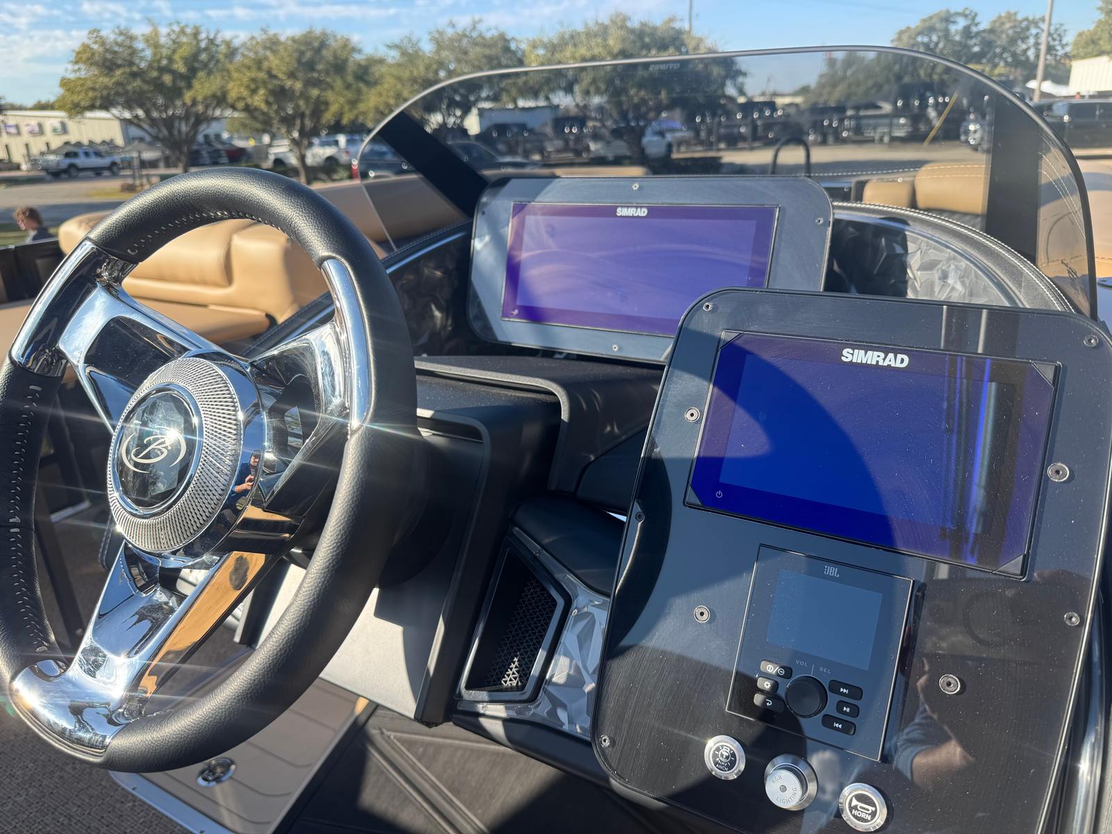 Power and precision are at the heart of the Barletta Lusso L25MAT. Equipped with twin Mercury (D) 400L V10 Verado engines, this pontoon boasts a combined 800 horsepower, delivering an exhilarating ride that is both smooth and responsive. The Pre-Rig V10 (350/400) Twin JPO system ensures seamless control and maneuverability, making docking and navigating tight spaces effortless. The advanced rigging with twin engines and propellers is engineered for optimal performance, allowing you to cruise, accelerate, and handle with confidence, whether you are exploring open waters or gliding through winding channels.